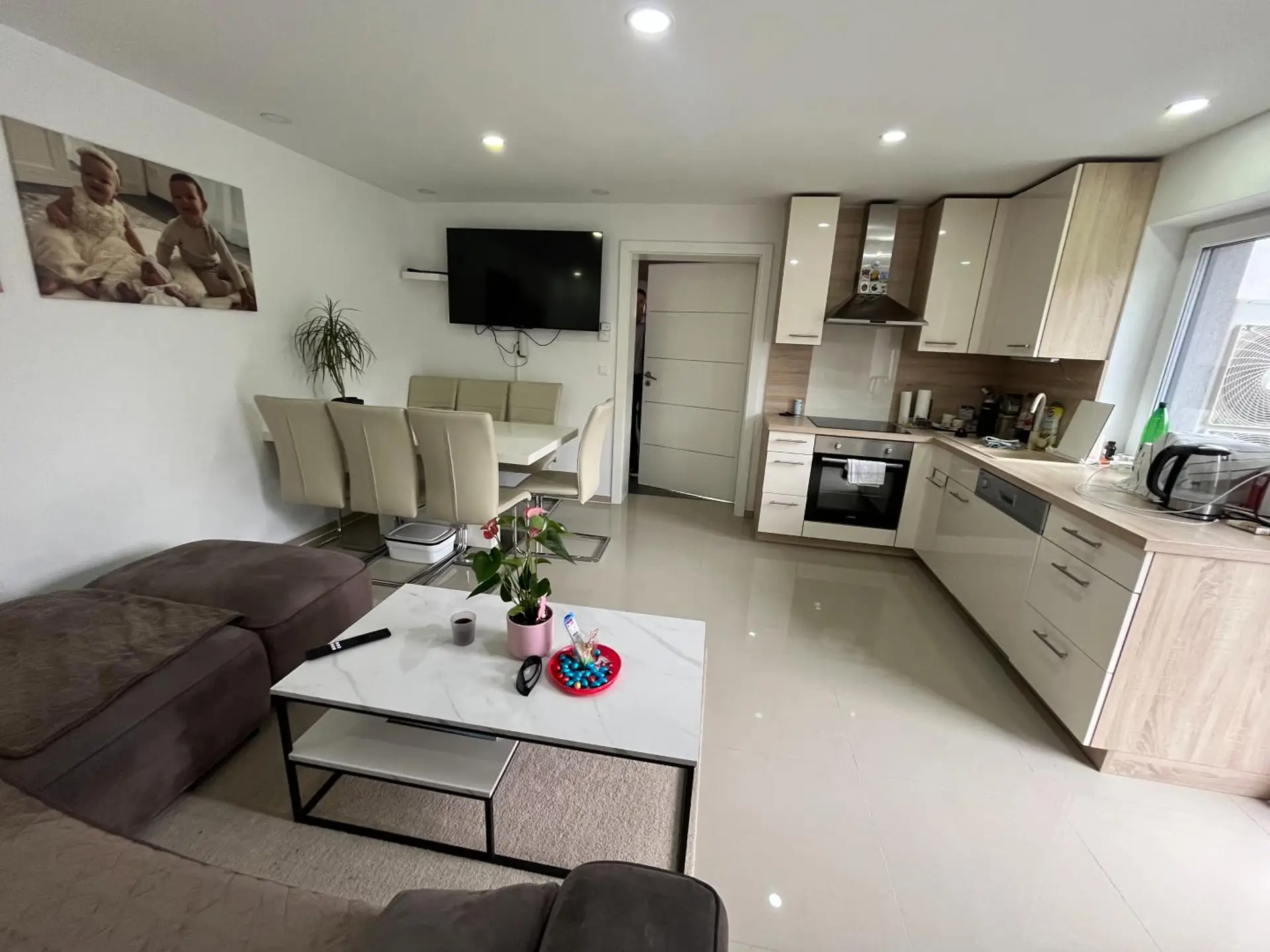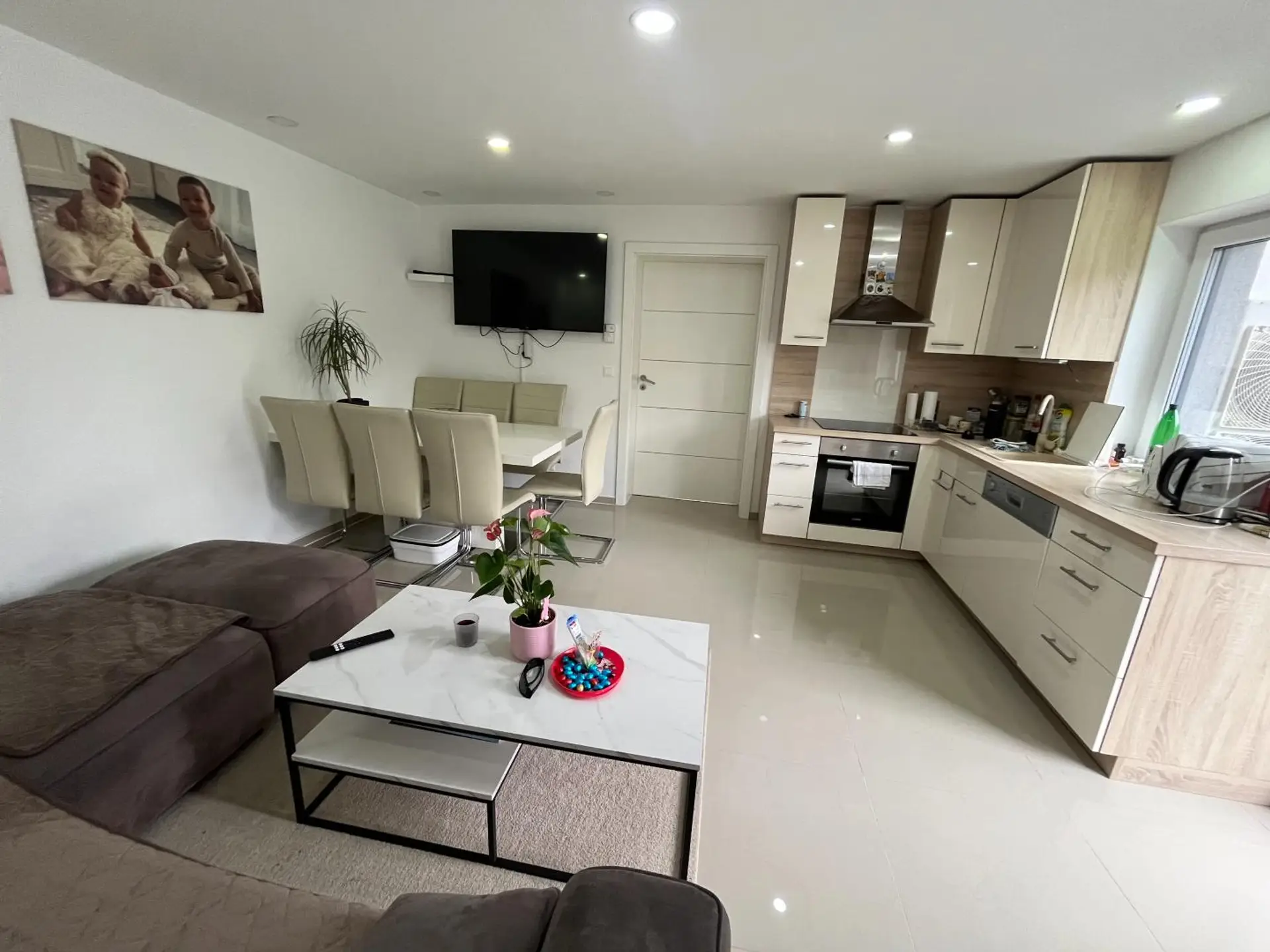 > großzügiger Wohnbereich mit Küche und Zugang zur Terrasse und Garten
