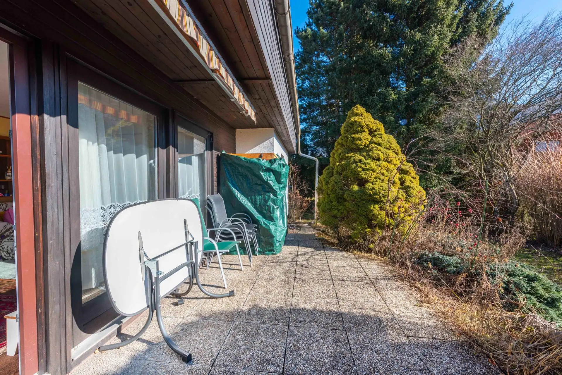 Nur ein paar Schritte weiter, "einmal ums Eck", ist die zweite Terrasse zu finden - ein Rückzugsort mit herrlichem Blick in den wunderschönen Garten!