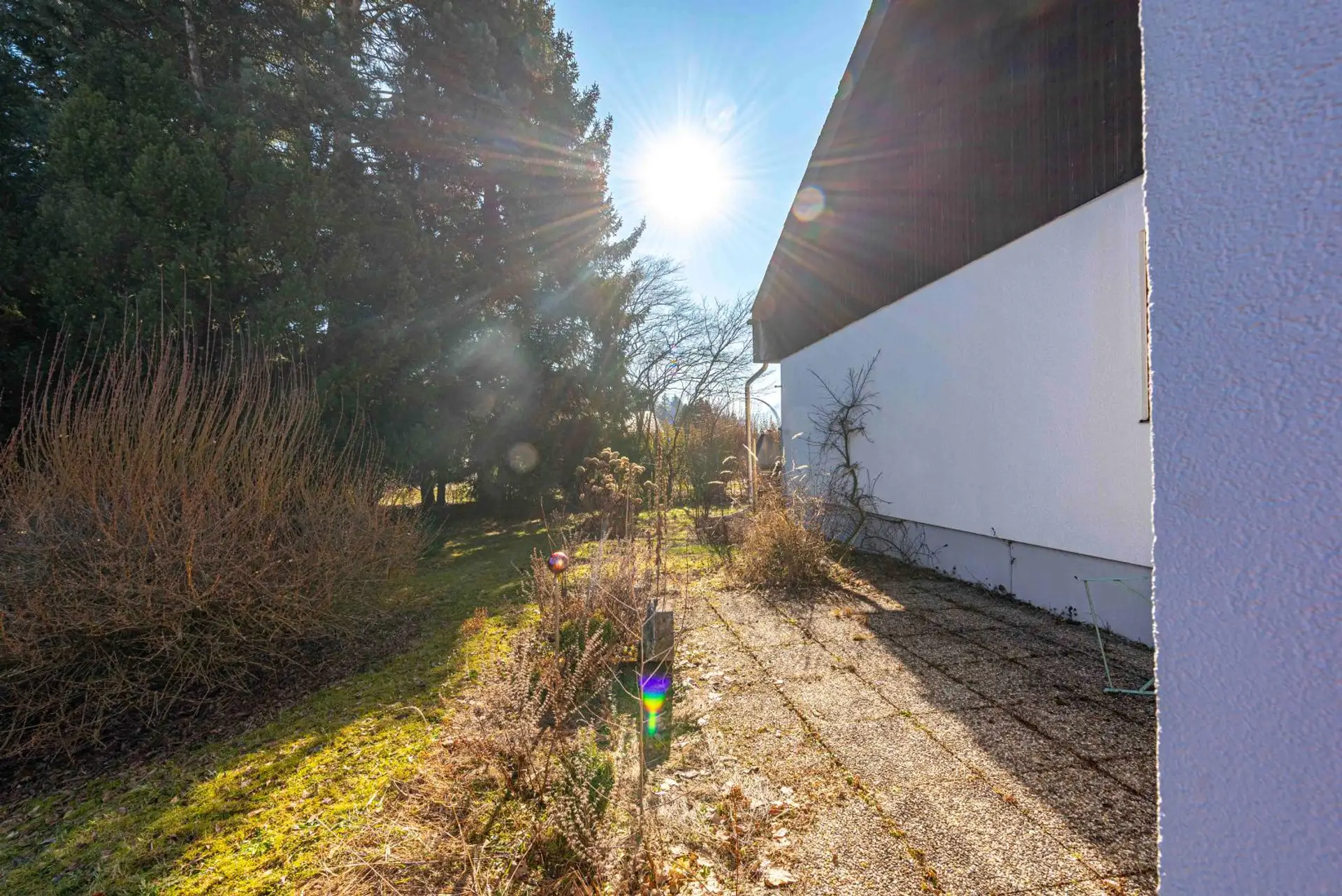 In Holzriegelbauweise errichtet und auf einem großzügigen Grundstück mit rund 1.384 m² platziert befindet dieses Haus aus den 70er Jahren.