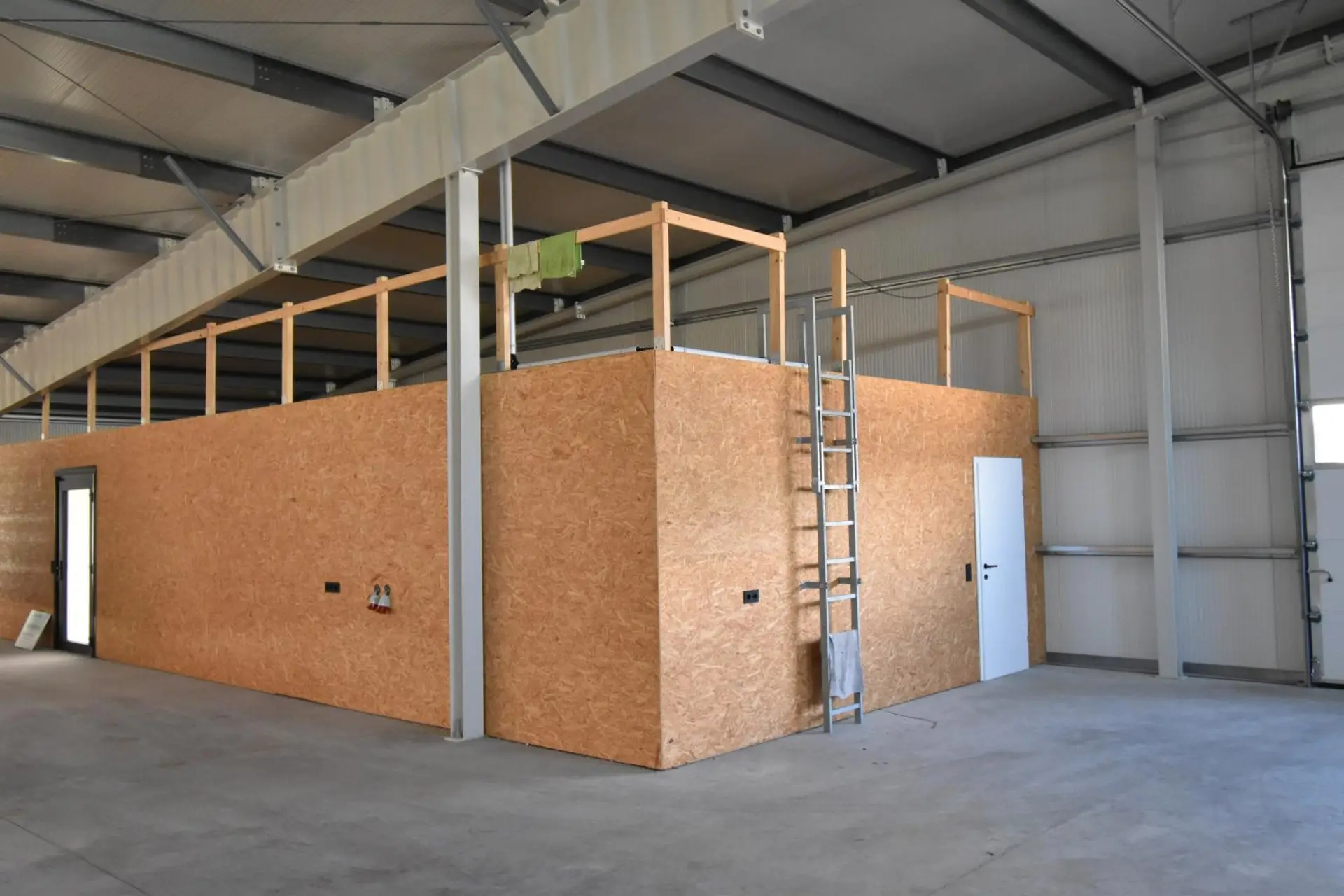 Die Hallenhöhe variiert zwischen ca. 3-6m. Sie ist neu errichtet und erstmalig zu beziehen.