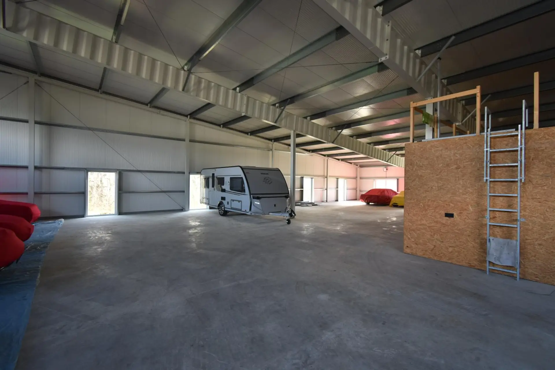 Die Nutzfläche ist über den gemeinsamen Eingang zentral begehbar. Ca. 436 m² umfassenden Lagerhalle und ca 100 m² Lagerfläche über dem Büro stehen zur Verfügung. Die Fläche ist über ein großzügiges Sektionaltor mit einer Einfahrtshöhe von ca. 4,50 m befahrbar.