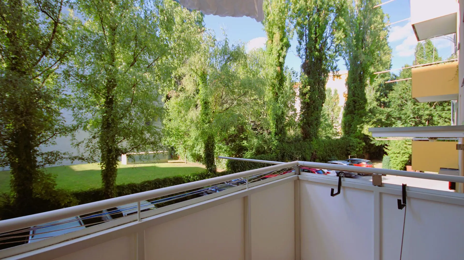 Besonders angenehm ist der Balkon Richtung Innenhof: viel Grün, ruhige Ausrichtung und kein direkter Straßenlärm. Ein idealer Rückzugsort für entspannte Momente.