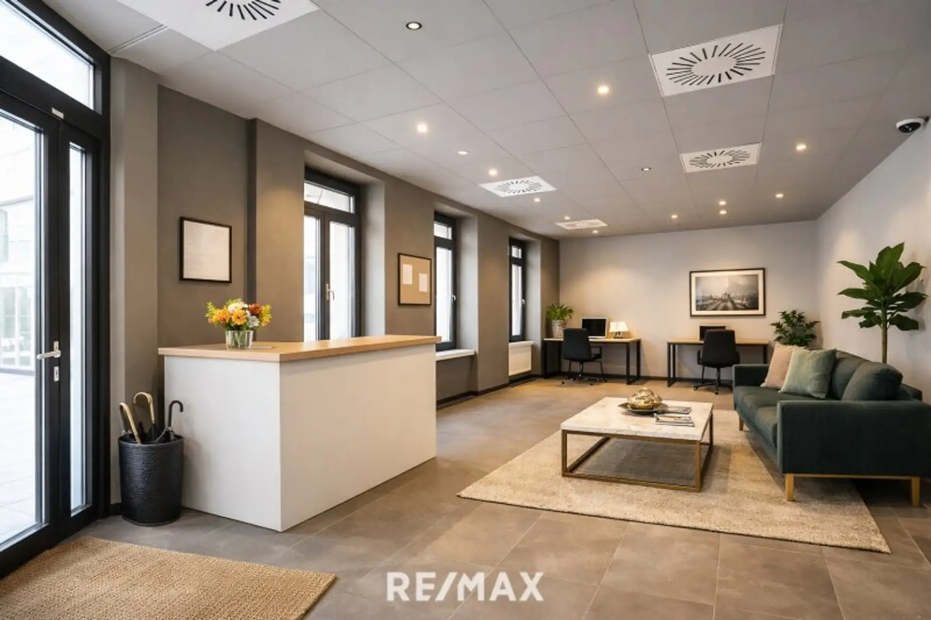 Im vorderen Bereich stehen zwei Haupträume zur Verfügung, die sich hervorragend als Empfangs-, Präsentations- oder Arbeitsflächen eignen. Ergänzt wird das Raumangebot durch einen zusätzlichen Nebenraum, ein Lager, einen Abstellraum, eine Teeküche sowie getrennte Sanitärbereiche für Damen und Herren.