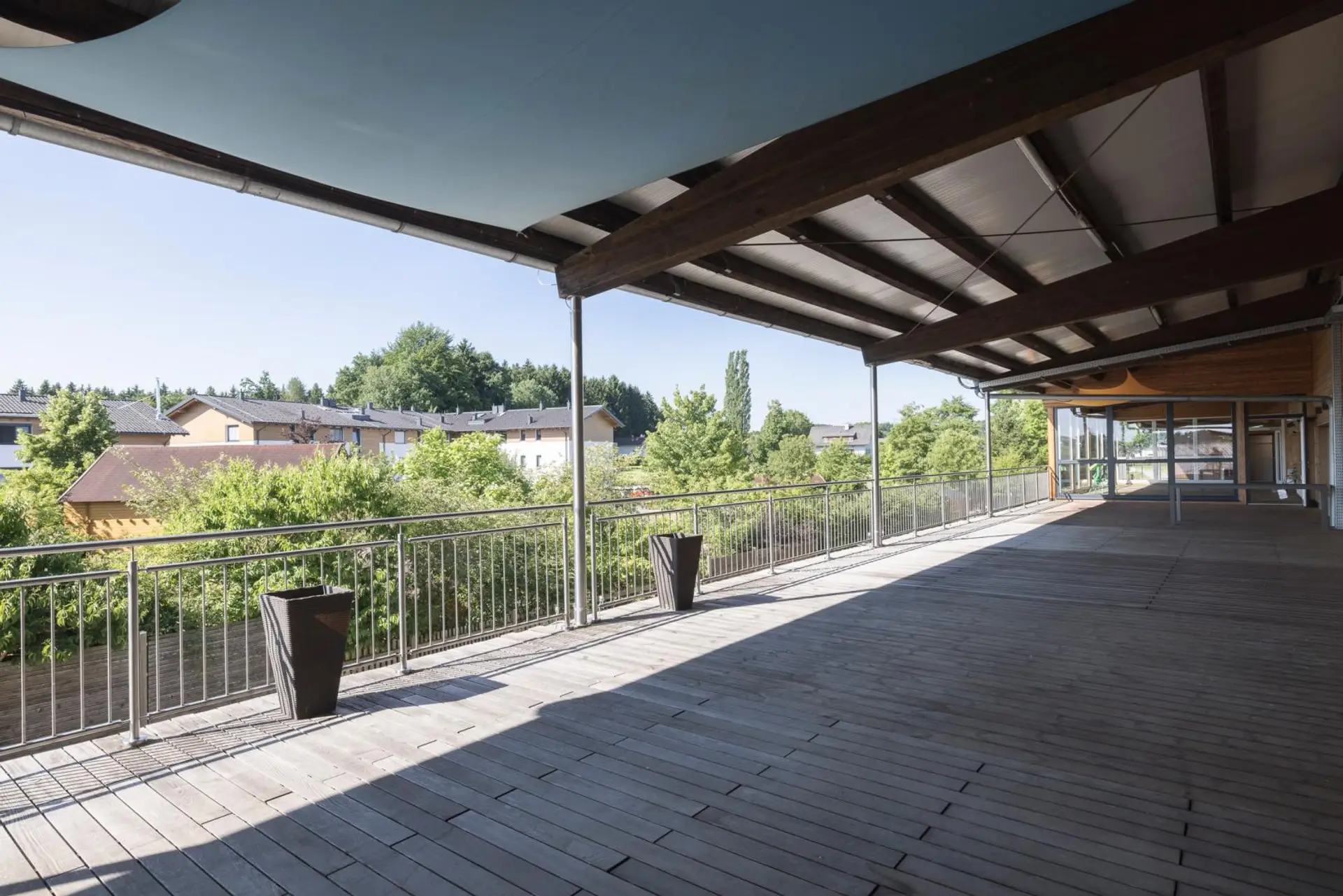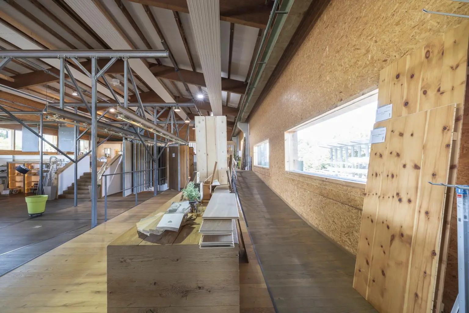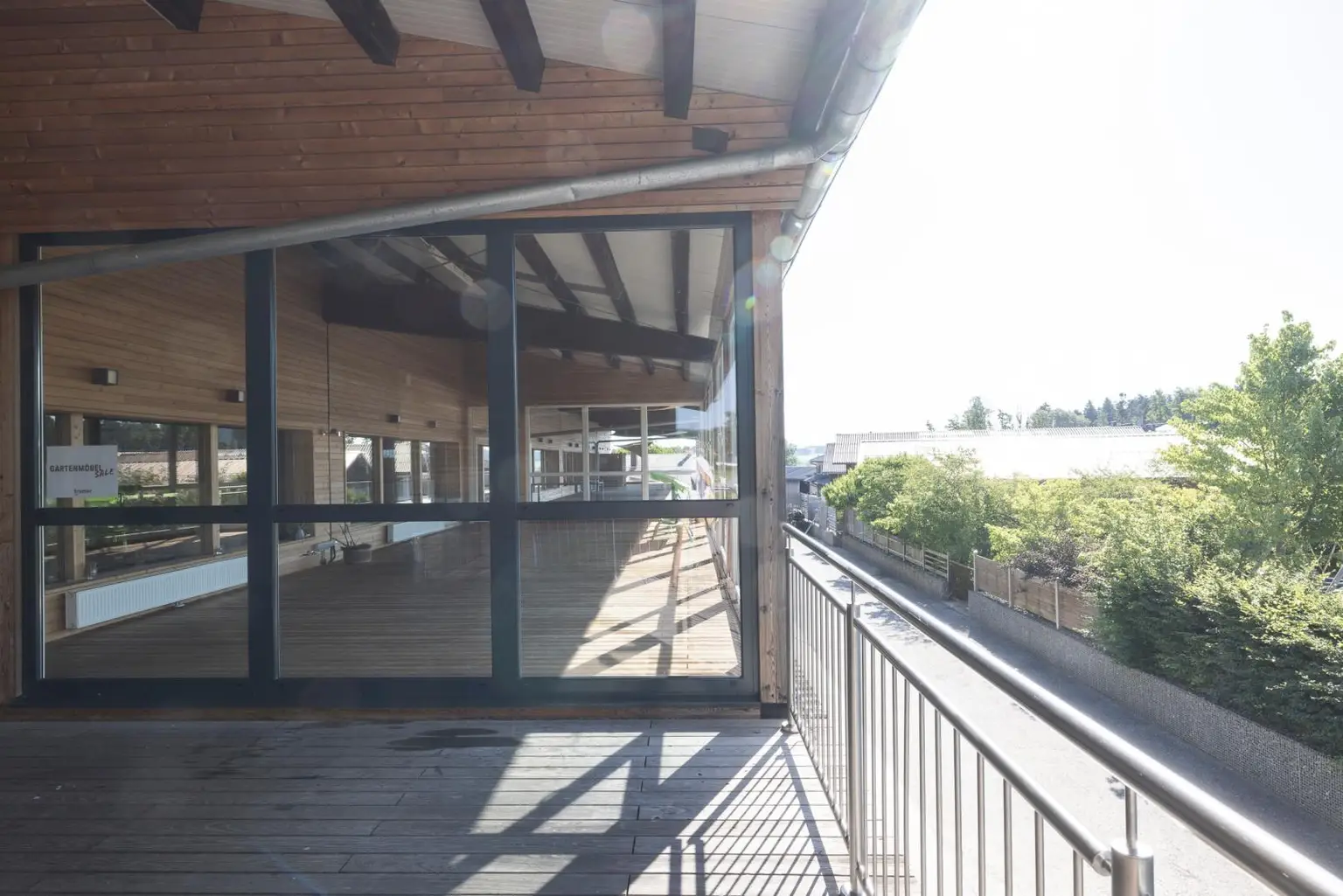 Das Obergeschoss ist über einen großzügigen, neun Meter breiten Stiegenaufgang erreichbar und bietet Raumhöhen von bis zu sieben Metern. Hier befinden sich eine helle Empfangseinheit sowie zwei Büroräume mit direktem Zugang zu einer eigenen Büroterrasse. Darüber hinaus stehen vier attraktive Lager-, Schau- und Ausstellungsflächen im Loft-Stil auf mehreren Ebenen zur Verfügung. Eine großzügige, teils überdachte und verglaste Terrasse lädt zum Verweilen ein.