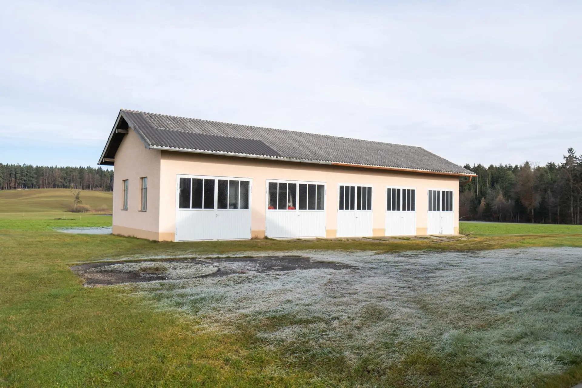Ergänzt wird das Ensemble durch eine Maschinenhalle, ein großes Stallgebäude sowie umfangreiche landwirtschaftliche Nutz- und Waldflächen.