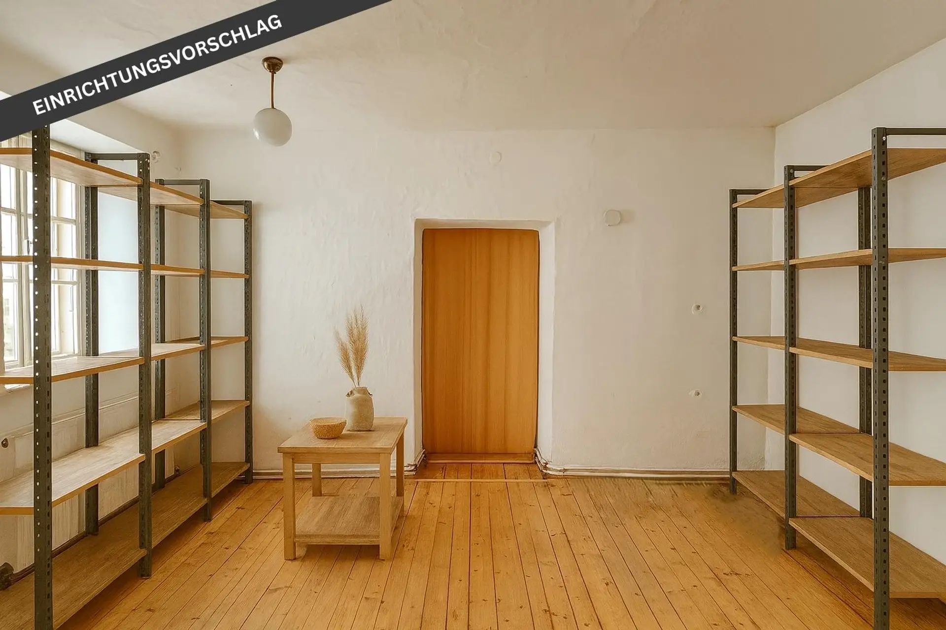 Dank der zentralen Lage ist sie sowohl für Kunden als auch Mitarbeiter optimal erreichbar – ideal für Beratung, Dienstleistung oder Verwaltung im kleinen Rahmen. Eine WC-Anlage ist vorhanden, ebenso ein zusätzlicher Lagerraum mit ca. 21,5 m², der sich ideal für Material- oder Warenlager eignet.