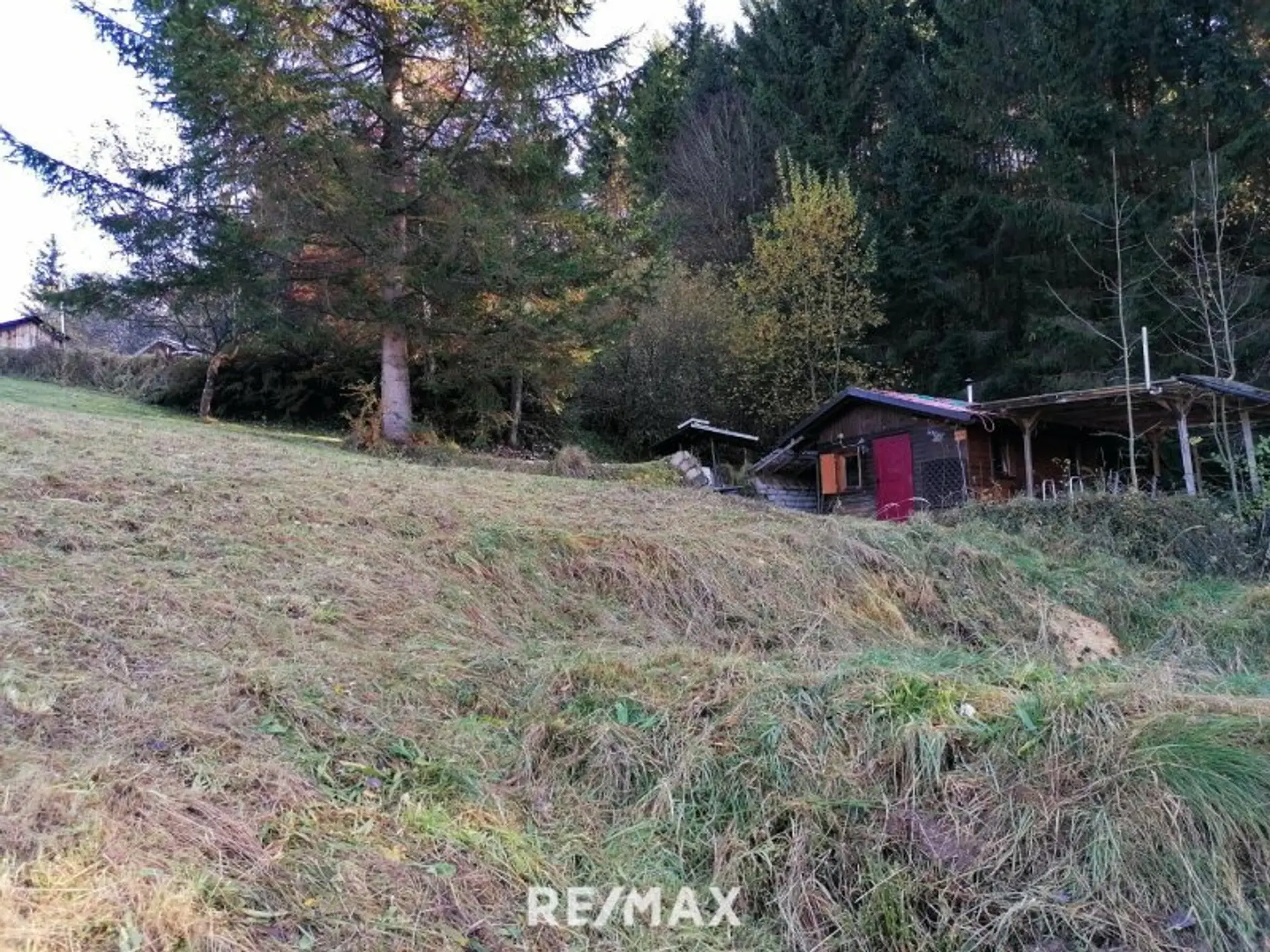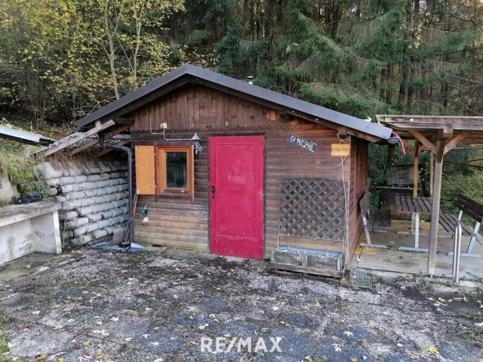 Aktuell ist das Grundstück mit einer Gartenhütte, einem Geräteschuppen und einem Grillplatz bebaut. Strom und Wasser sind bereits erschlossen, der Kanal ist in der Zufahrtsstraße vorhanden.