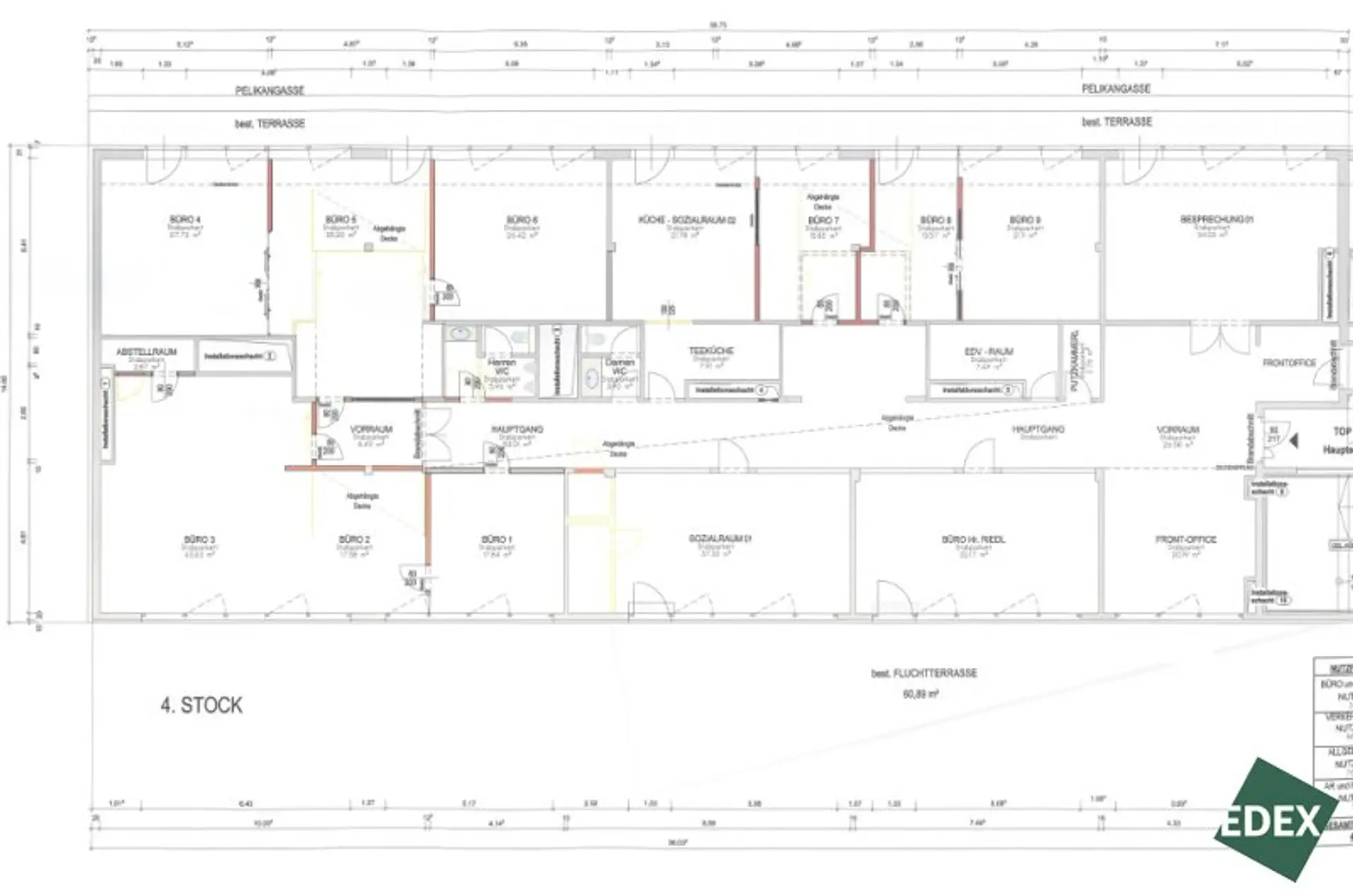 Das Gebäude vereint somit hochwertige Infrastruktur für wissenschaftliche Einrichtungen mit den Anforderungen moderner Arbeitswelten. Die zur Verfügung stehende Fläche im 4. Obergeschoss zeichnet sich durch eine funktionale Raumaufteilung und einen klar strukturierten Grundriss aus. Die Fläche bietet einen einladenden Empfangsbereich, verschieden große Büro- und Besprechungsräume, eine Teeküche sowie getrennte WC-Anlagen. Durch die flexible Raumaufteilung lässt sich die Einheit gut an unterschiedliche Nutzungsbedürfnisse anpassen. Ein besonderes Highlight sind die vorhandenen Terrassenflächen, die zusätzlichen Freiraum schaffen und sich ideal für Pausen oder Besprechungen eignen.