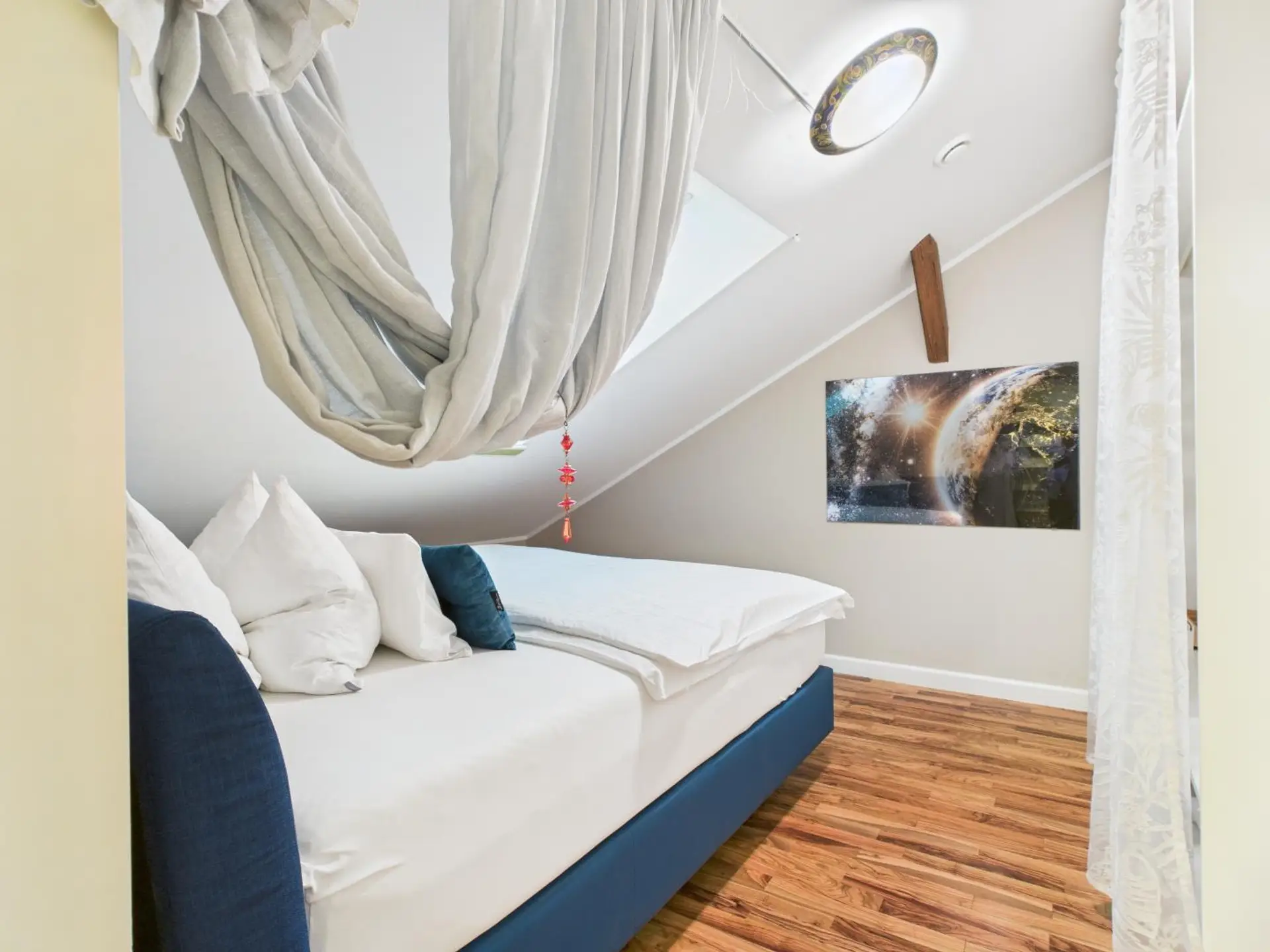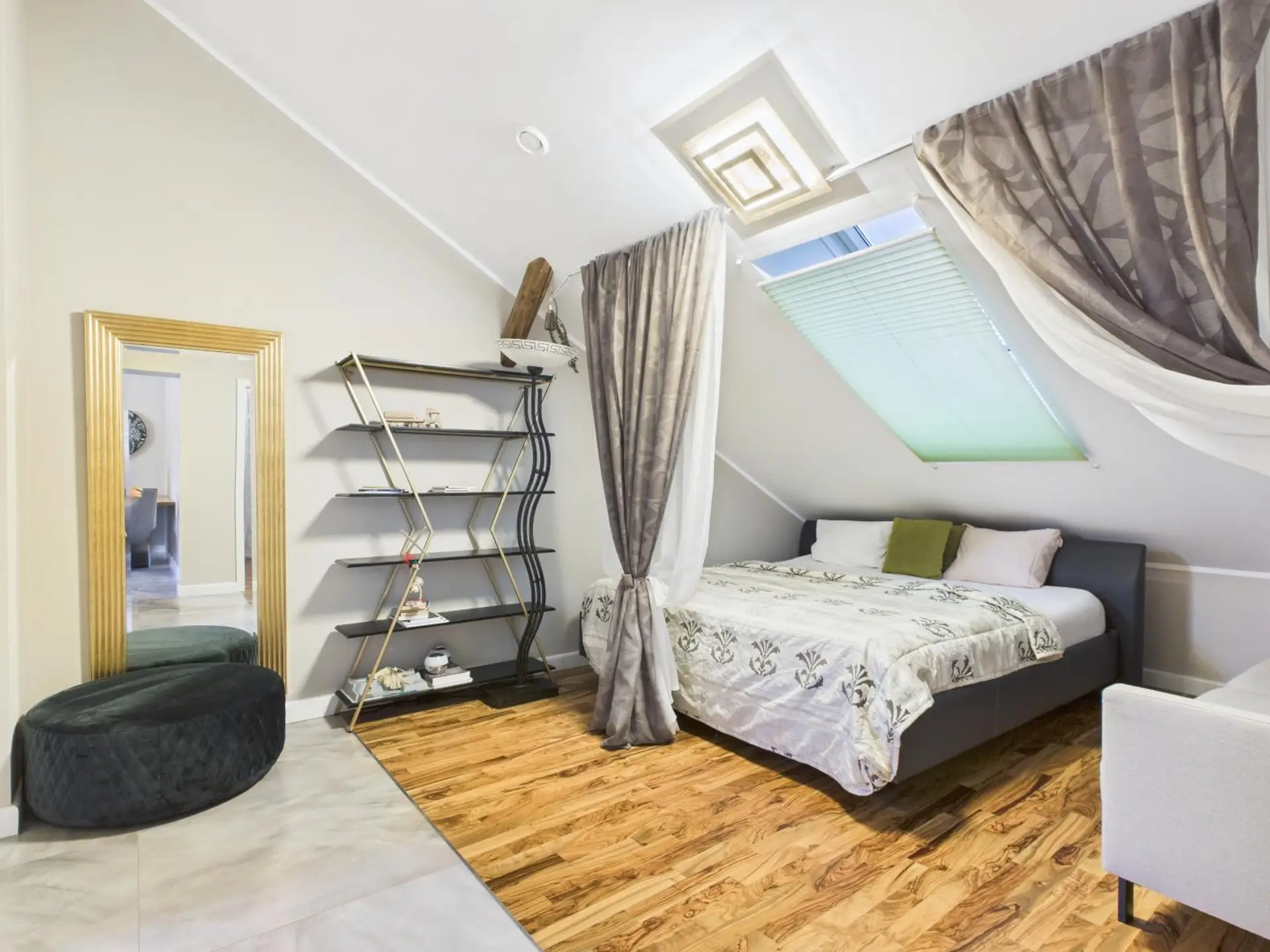 - Dachgeschoss: moderne Wohnung mit zwei Schlafzimmern, großem Wohnzimmer und Bad mit Badewanne