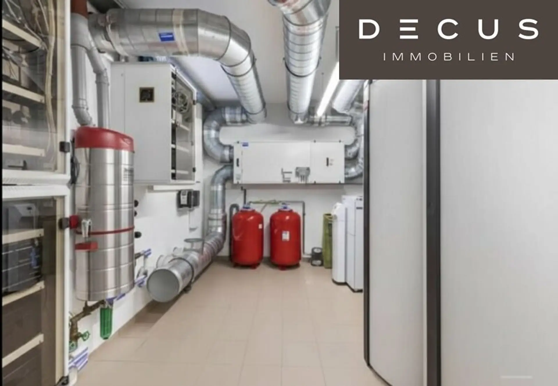 * Technikraum mit zwei Pufferspeichern für Warmwasseraufbereitung, Hebeanlage für Wasser, Bussystem-Elektrokästen, Staubsaugerabsaugung, kontrollierte Wohnraumbelüftung