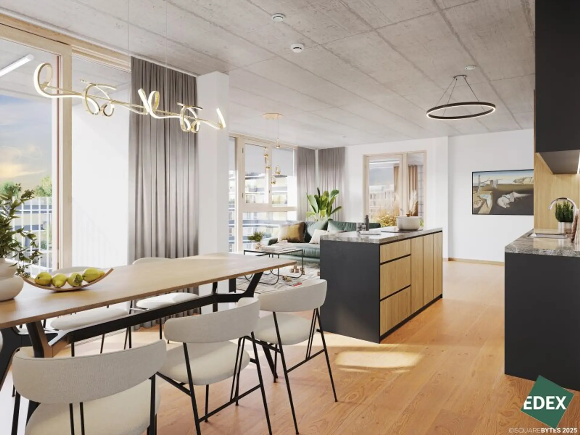 Das Baufeld 14B nimmt dabei eine besondere Rolle ein: Zwei Bauteile, die sich zu einem Baukörper vereinen - sechs bzw. elf Geschosse hoch - fügen sich harmonisch in die Umgebung ein und eröffnen Platz für 109 Wohnungen mit zwei bis fünf Zimmern sowie zwei Gewerbeflächen im Erdgeschoss. Das Projekt spricht besonders Jene an, die zentrumsnah, urban und gleichzeitig naturnah wohnen möchten. Hier finden Familien, Paare, Singles wie auch ältere Generationen ein Zuhause, das den Wunsch nach Individualität mit dem Gefühl von Gemeinschaft verbindet.
