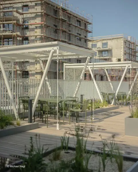 * eine Gemeinschaftsterrasse im 6. OG mit Sitzmöglichkeiten