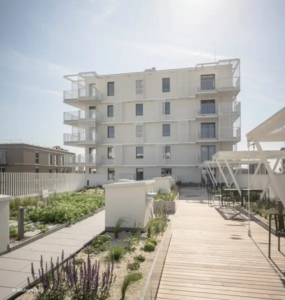 * extensiv begrüntes Dach mit Photovoltaikanlage für die Allgemeinflächen