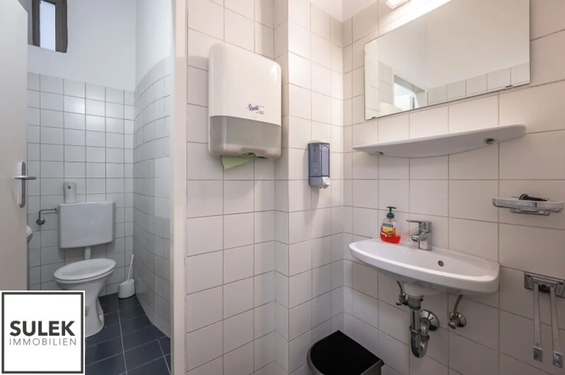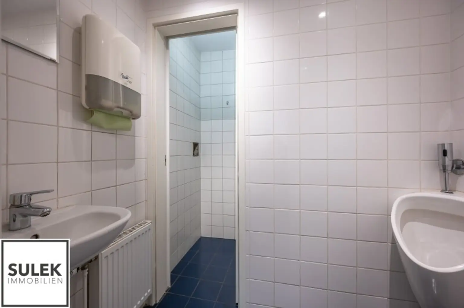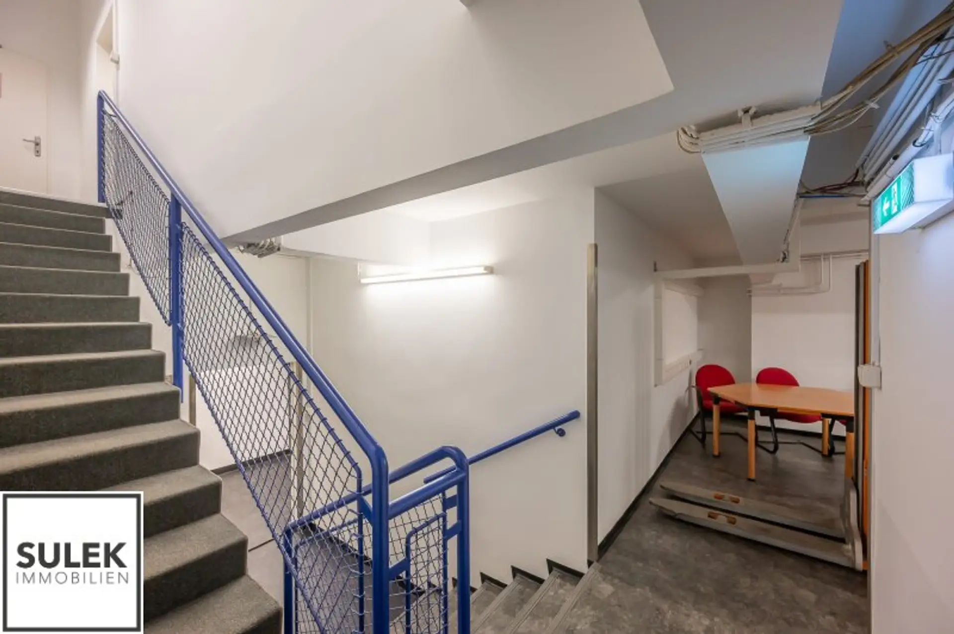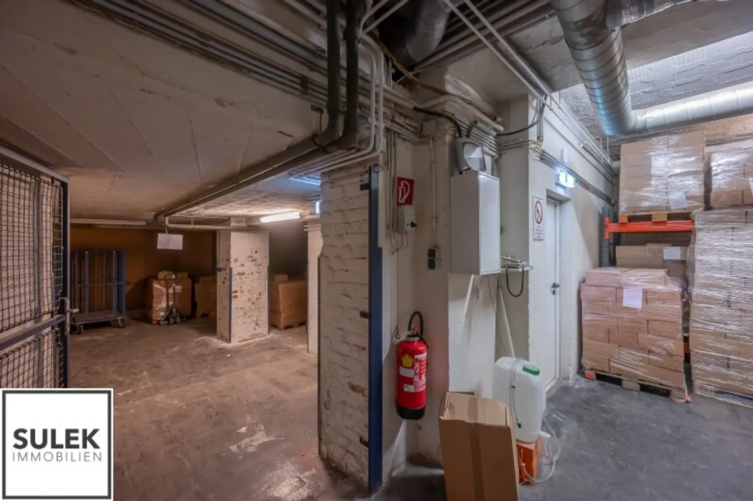 Im Souterrain stehen weitere flexibel nutzbare Flächen zur Verfügung – darunter Lager- und Archivräume, zusätzliche Sanitärbereiche, Gangflächen sowie ein Müllraum. Die Belichtung erfolgt straßenseitig über teils milchglasgetönte Fenster sowie über Oberlichten im rückwärtigen Bereich, wodurch auch diese Etage gut nutzbar ist. Nach Angaben des Eigentümers werden einige dieser Räume bereits als Büroflächen verwendet. Auch hier besteht ein direkter Zugang zum allgemeinen Stiegenhaus.