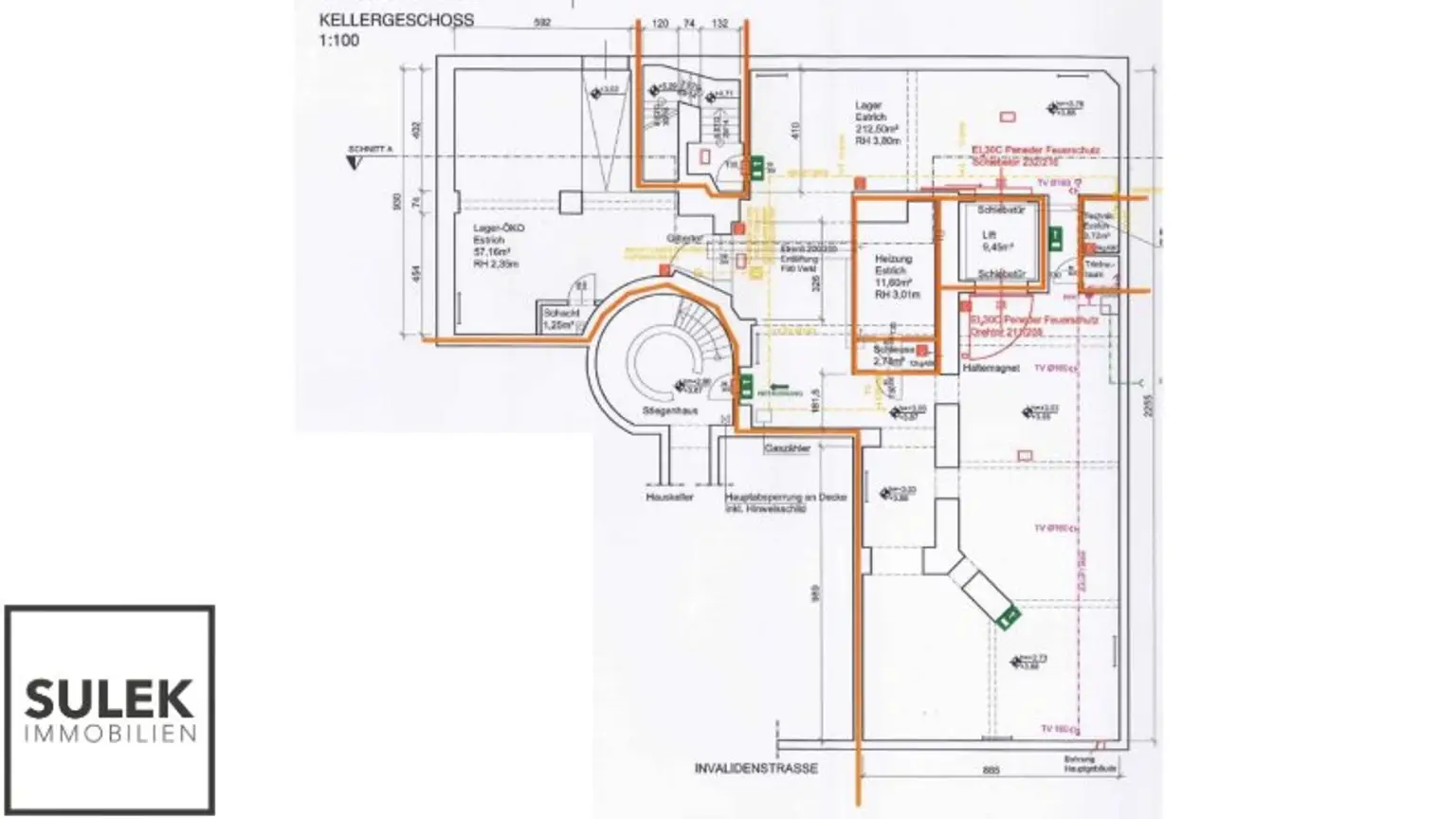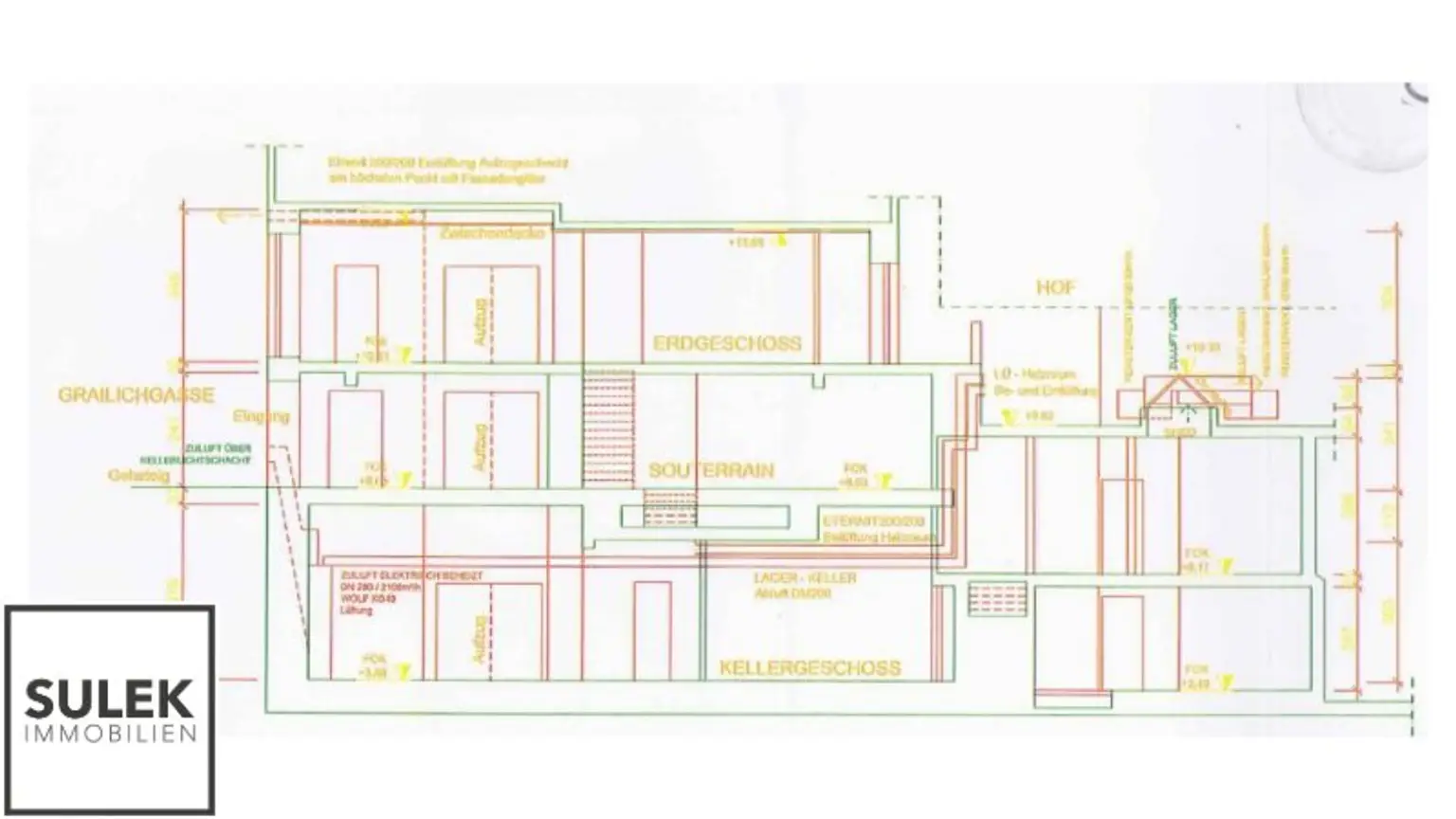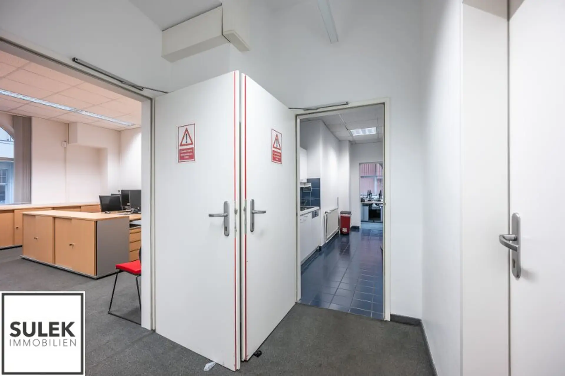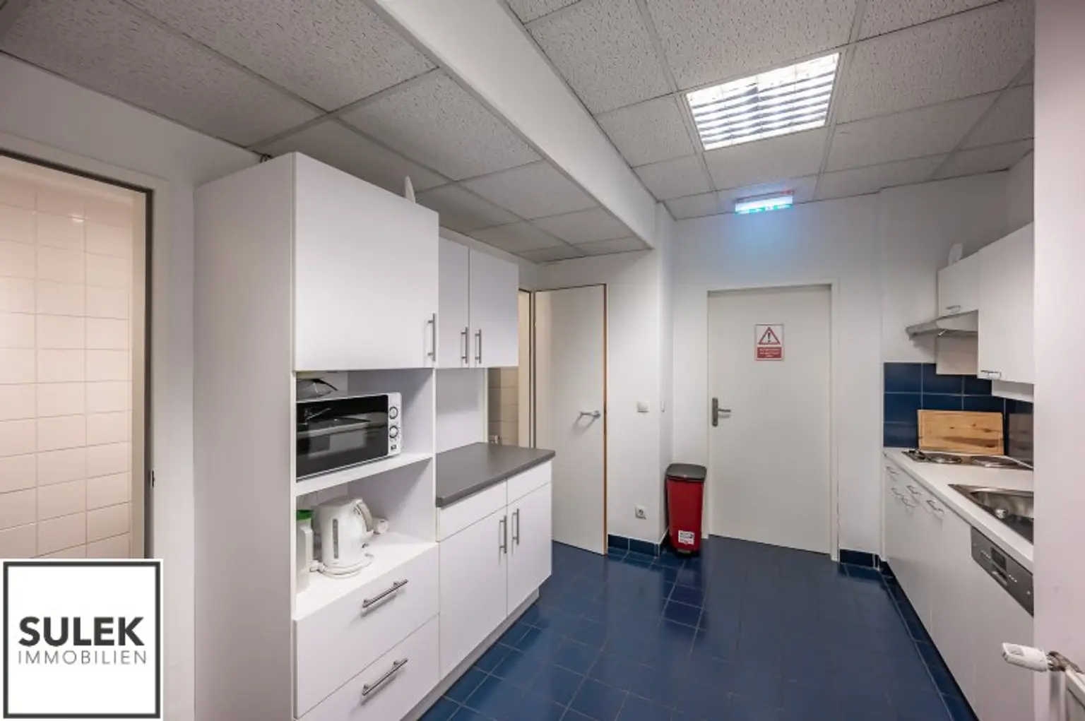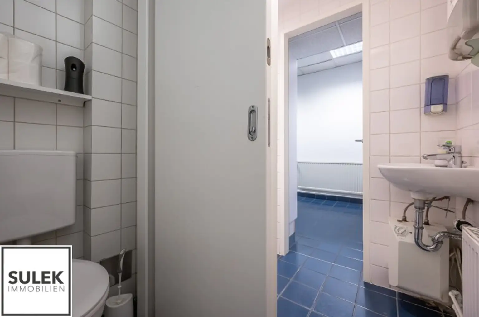 Im Souterrain stehen weitere flexibel nutzbare Flächen zur Verfügung – darunter Lager- und Archivräume, zusätzliche Sanitärbereiche, Gangflächen sowie ein Müllraum. Die Belichtung erfolgt straßenseitig über teils milchglasgetönte Fenster sowie über Oberlichten im rückwärtigen Bereich, wodurch auch diese Etage gut nutzbar ist. Nach Angaben des Eigentümers werden einige dieser Räume bereits als Büroflächen verwendet. Auch hier besteht ein direkter Zugang zum allgemeinen Stiegenhaus.