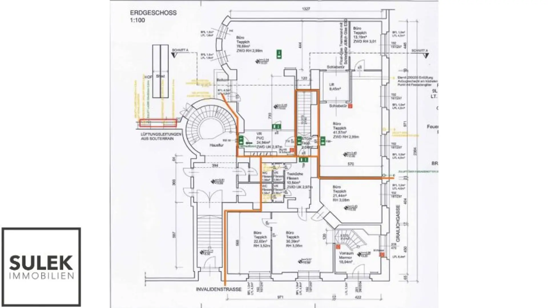 * sechs Büroräumlichkeiten (das Größte davon mit Zugang zum Balkon)