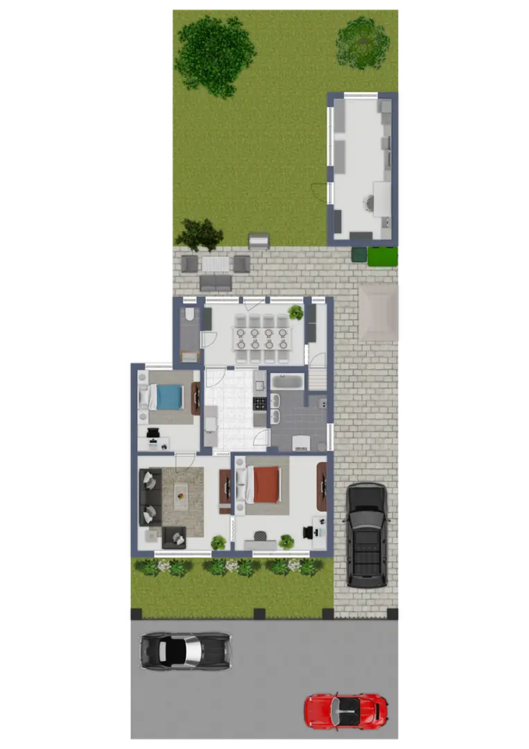 + Einfahrt mit 2 KFZ-Abstellplätzen