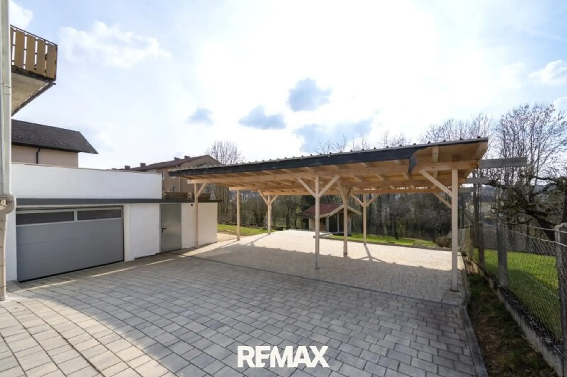Für ausreichend Parkmöglichkeiten ist ebenfalls bestens gesorgt – die Liegenschaft verfügt über drei Carportstellplätze, eine Garage sowie mehrere Parkmöglichkeiten im Freien auf eigenem Grund.
