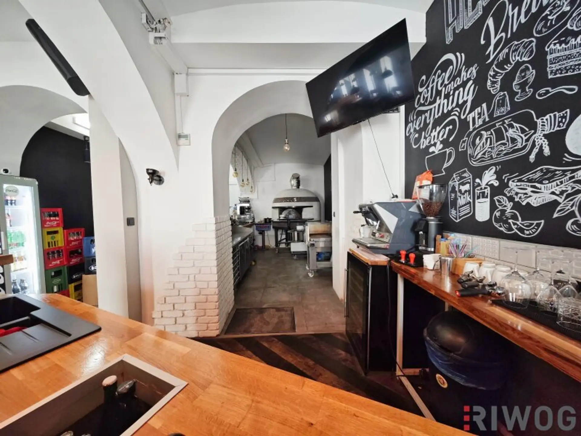 In gut ersichtlicher Ecklage, im Erdgeschoss eines Hotels eingebettet, liegt mit davor möglichem Schanigarten, ein volleingerichtetes Gastronomielokal. Im Gastbereich befindet sich neben der Schank, auch eine kleine Küche zum Pizzabacken samt entsprechenden Ofen. Vorgelagert, im Zugangsbereich, gibt es eine kleine Lounge und eine Ausstattung für ein (Frühstücks-)Buffet.