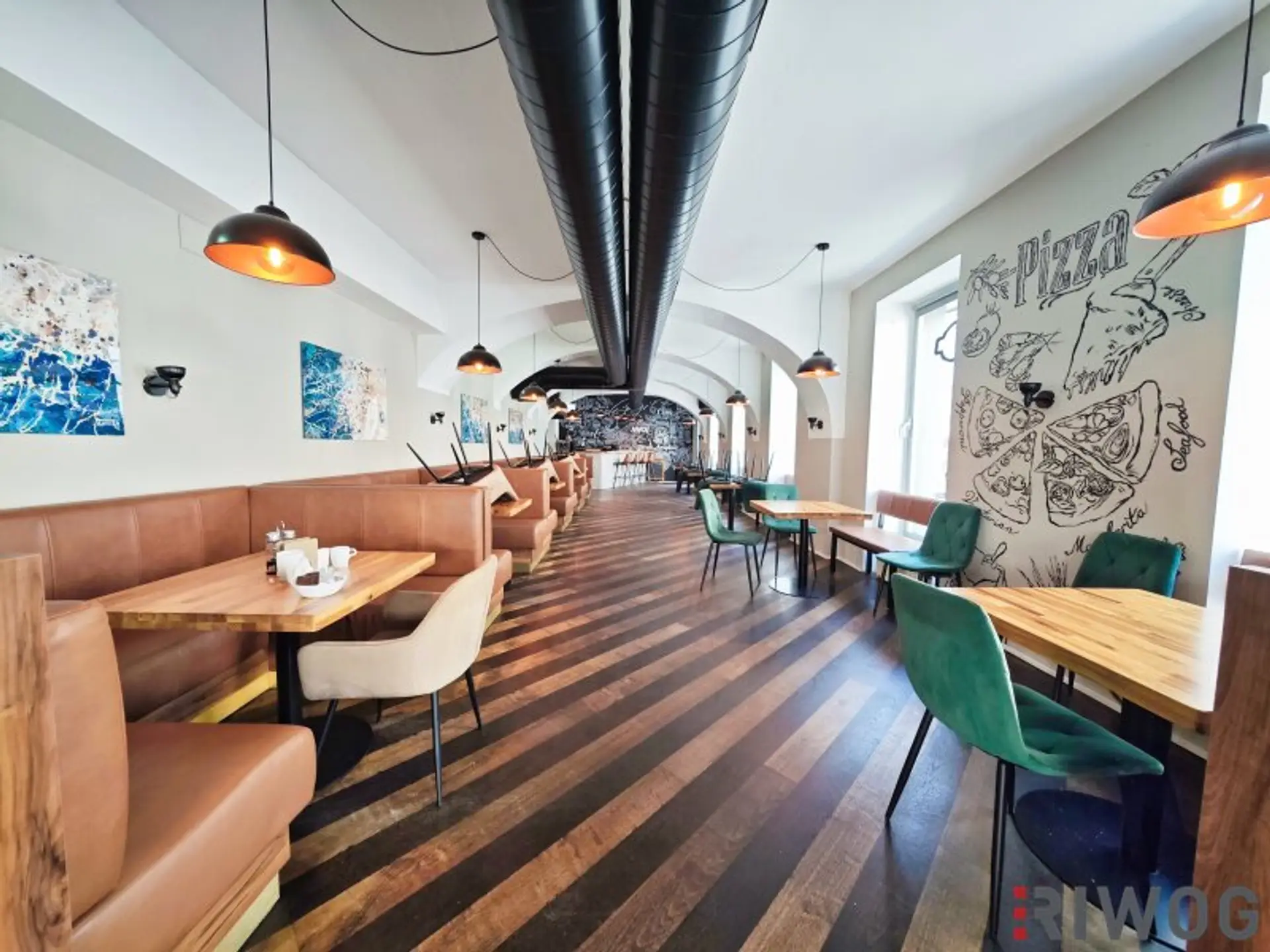 ES HANDELT SICH HIERBEI UM EINE KOOPERATION MIT DEM HOTEL: Das Hotel nutzt die Räumlichkeiten vormittags für das Frühstücksbuffet und ab 12Uhr kann der Mieter die Pizzeria betreiben.