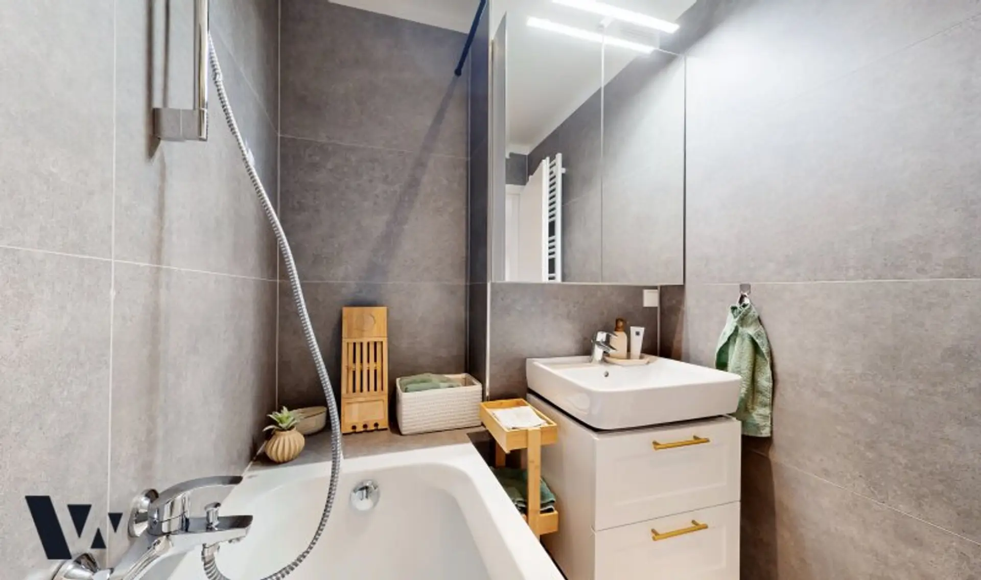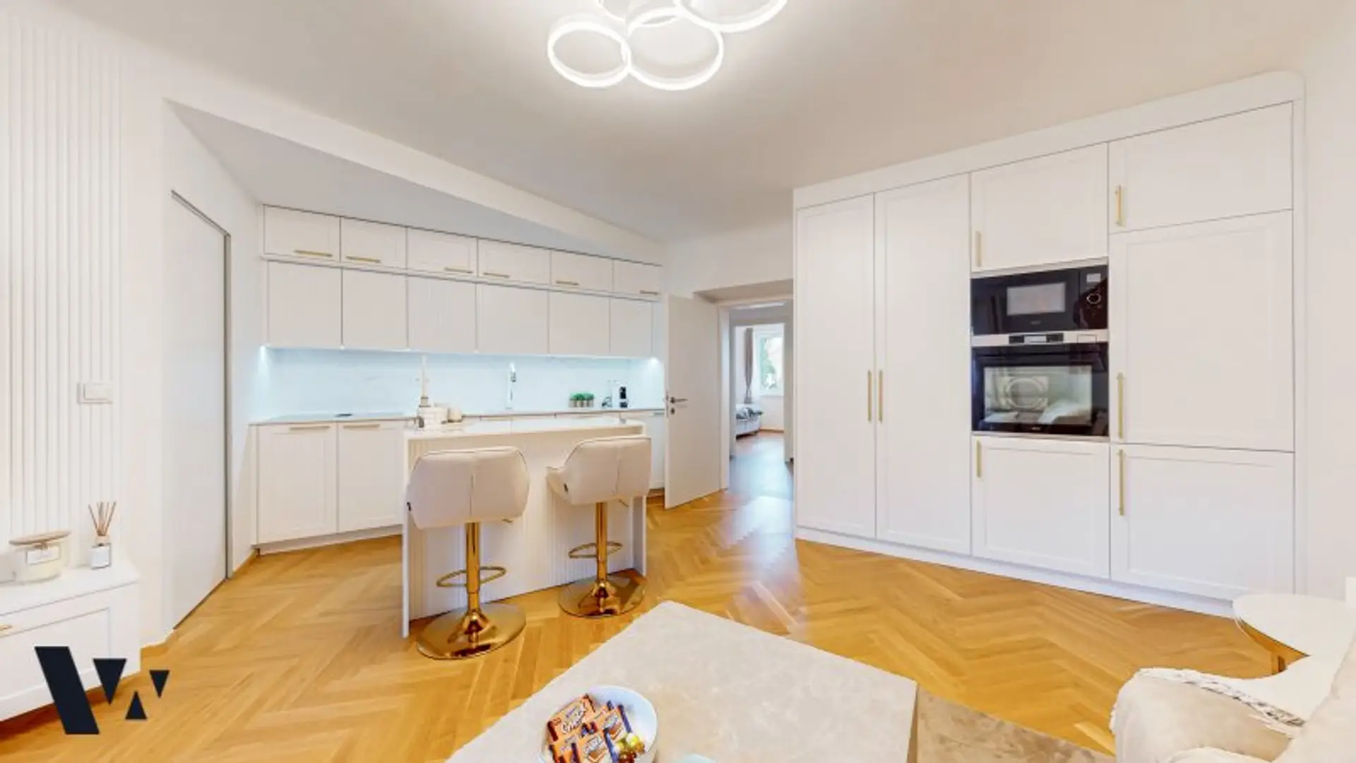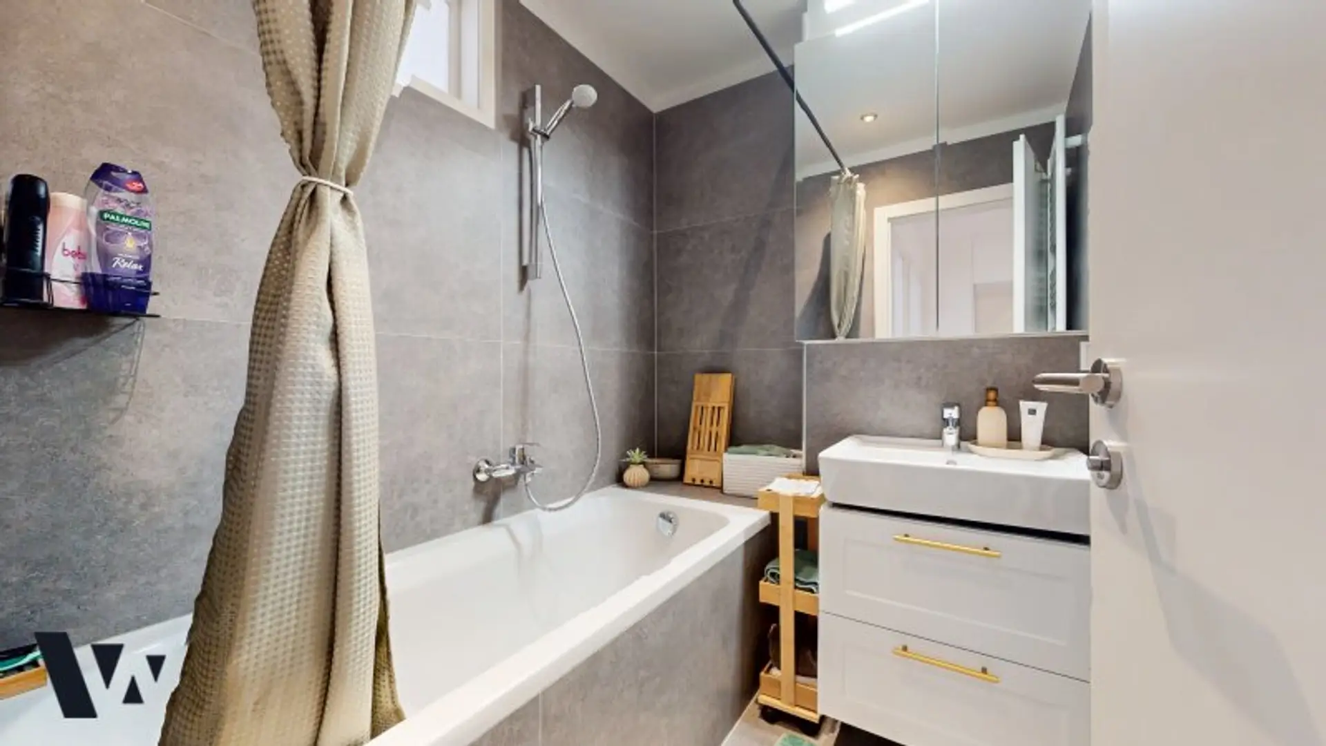 Die Wohnung wurde 2022 umfassend saniert und befindet sich in hervorragendem Zustand. Hochwertige Eichenparkettböden, moderne Feinsteinzeugfliesen in Bad und WC und eine Fußbodenheizung schaffen ein stimmiges, modernes Gesamtbild.
