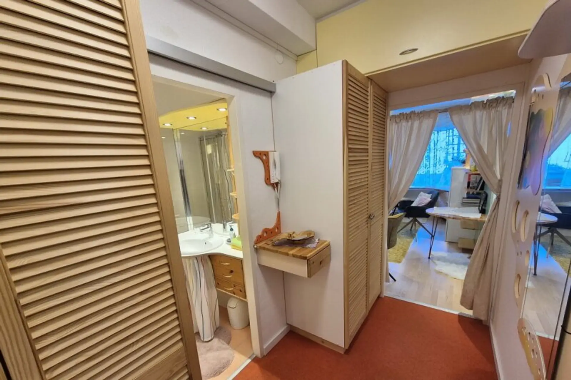 Die Wohnung besticht durch ihre effiziente Raumaufteilung, die den vorhandenen Wohnraum optimal nutzt. Der offen gestaltete Hauptbereich schafft ein helles, einladendes Ambiente und bietet trotz kompakter Größe genügend Platz für Alltag und Erholung.