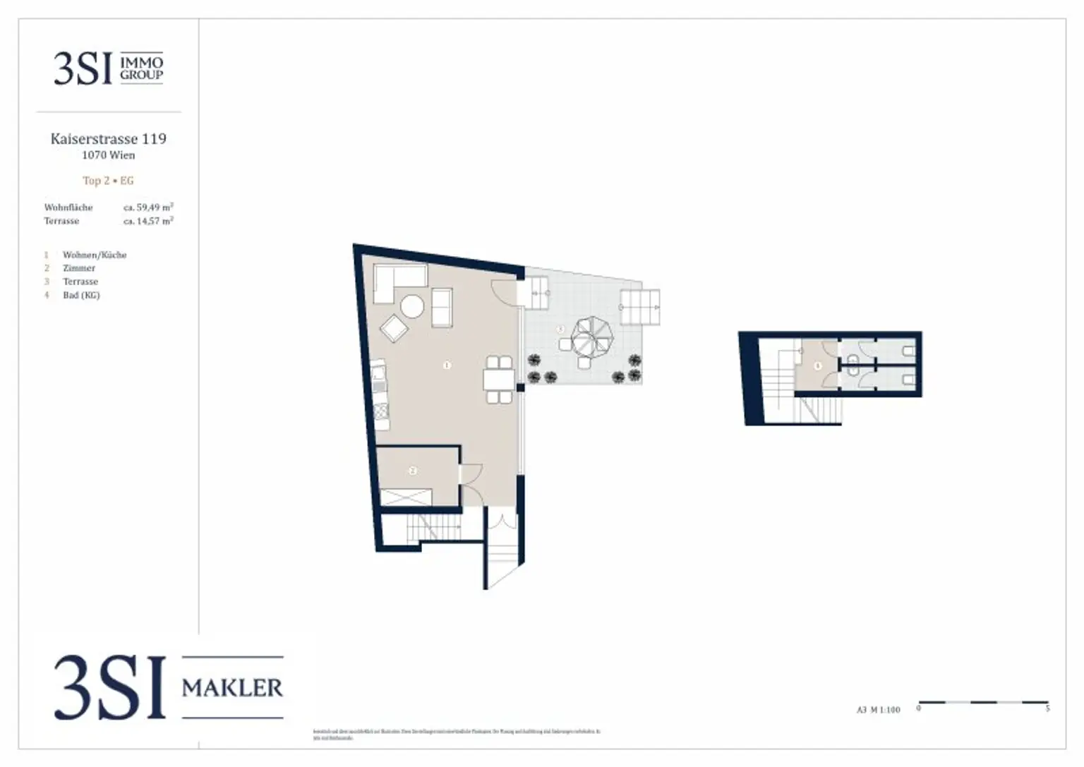 Zusätzlich verfügt die Wohnung über eine eigene Terrassenfläche im Innenhof mit ca. 14,57 m², die zum Verweilen und Entspannen einlädt.