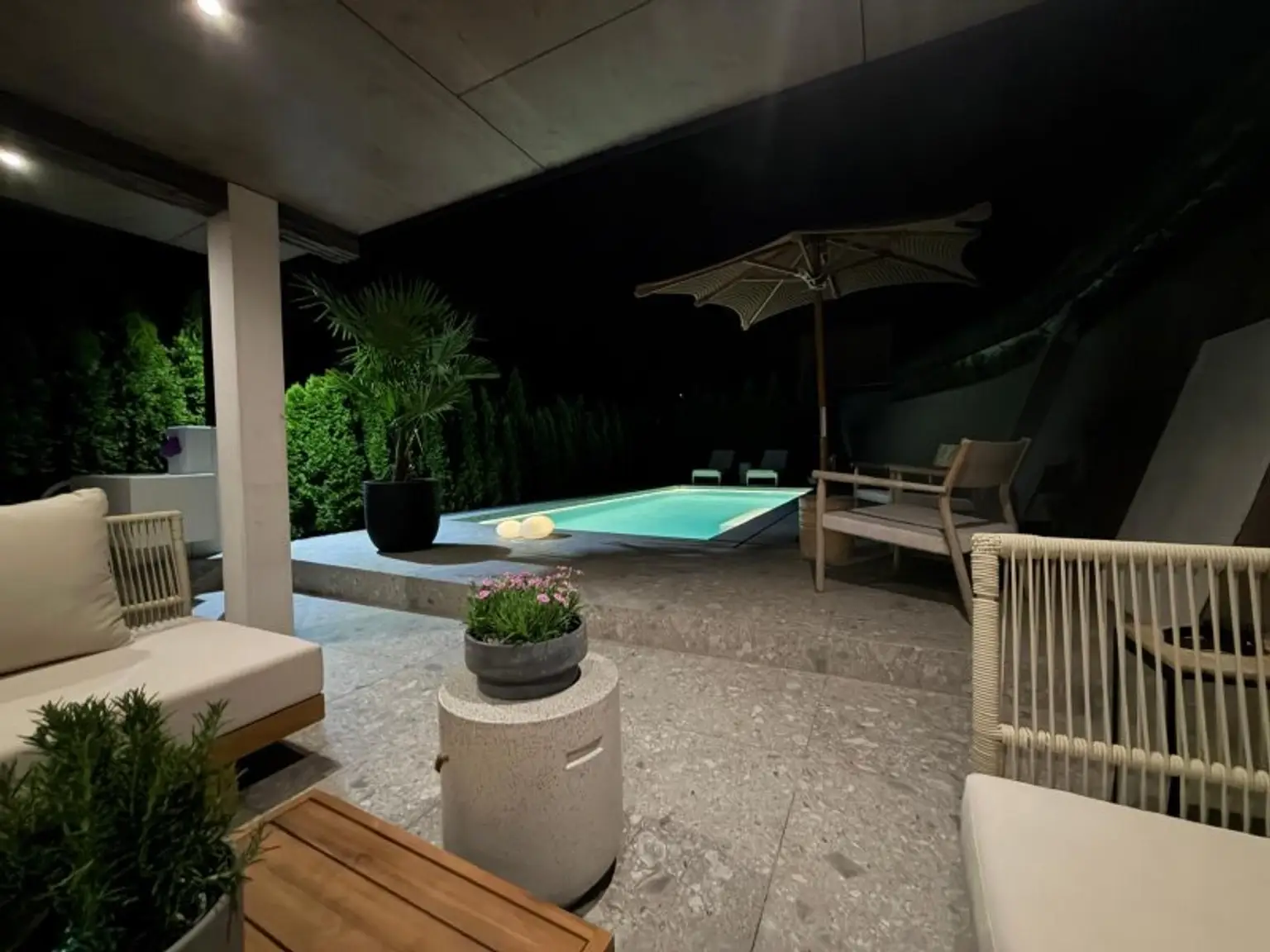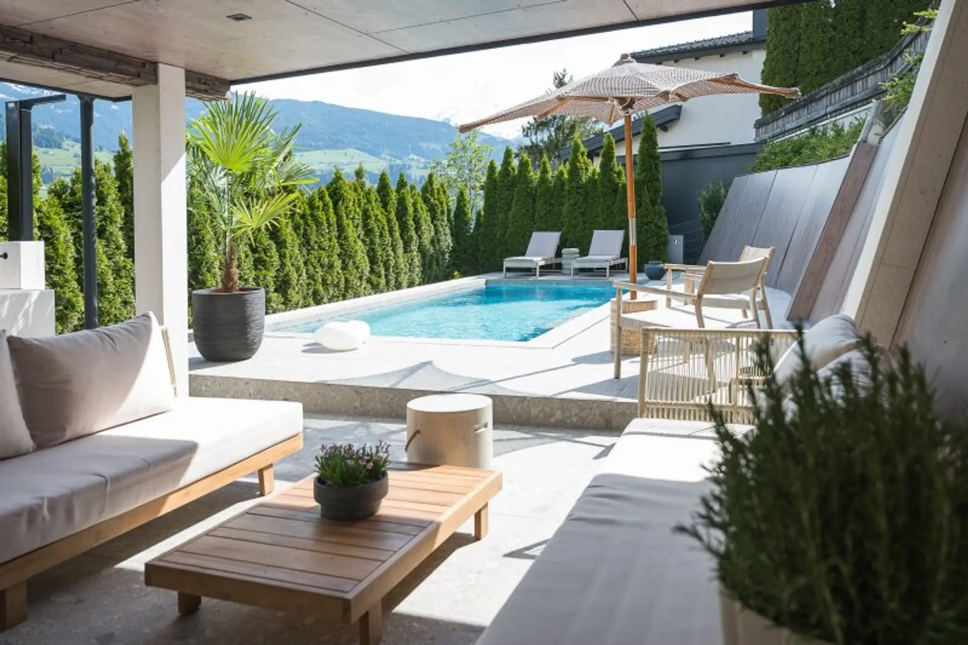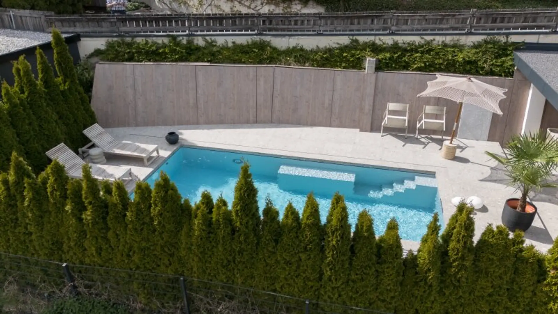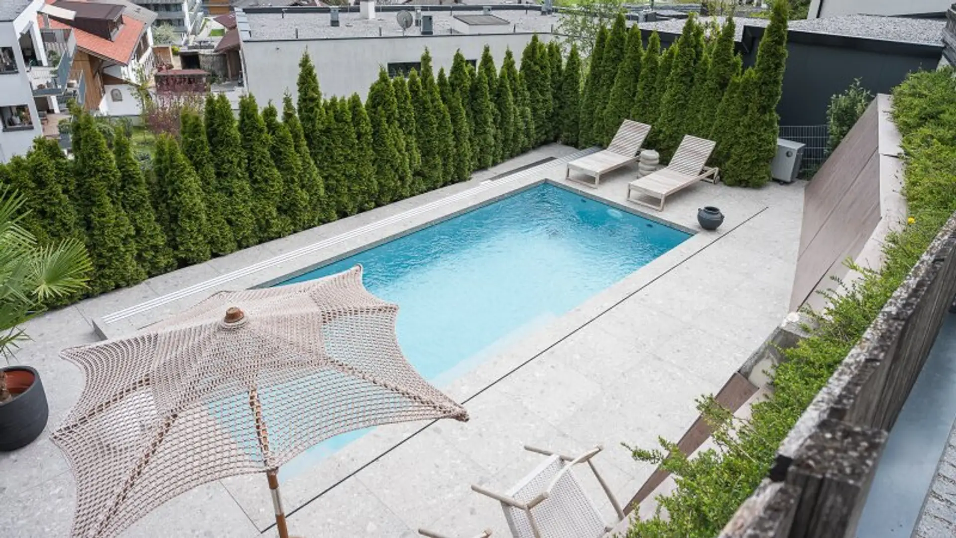 * Terrasse ca. 150 m² mit Swimmingpool