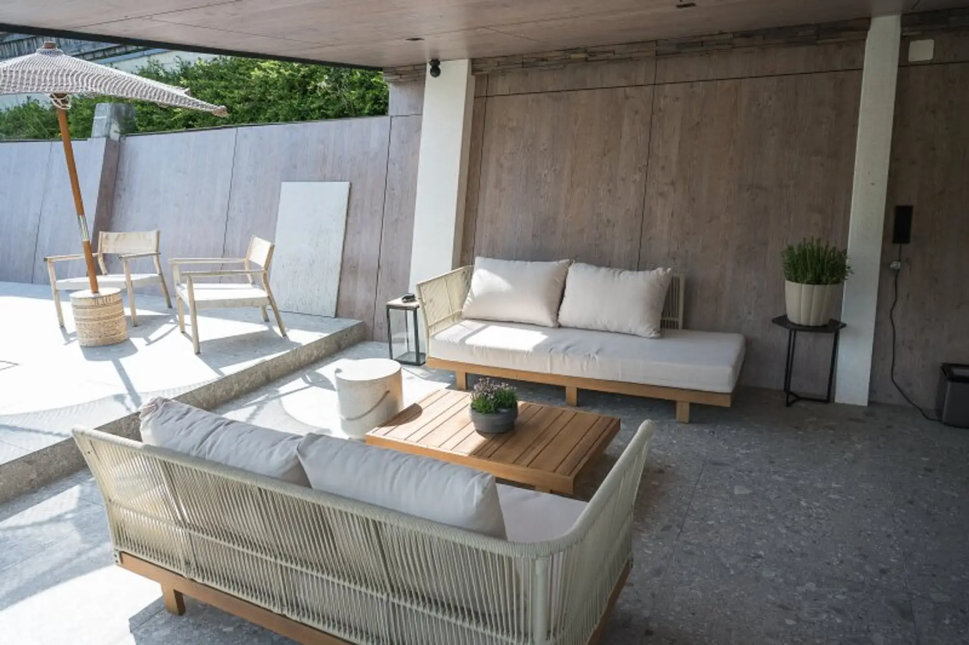 * im gesamten Bereich der Terrasse wurden hochwertige Fliesen verlegt