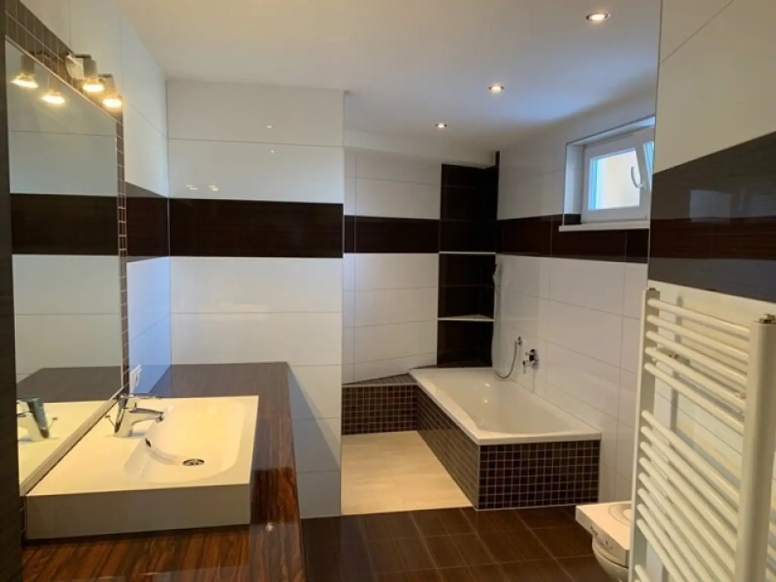 untere Etage: 3 Zimmer, Bad mit WC, Garten