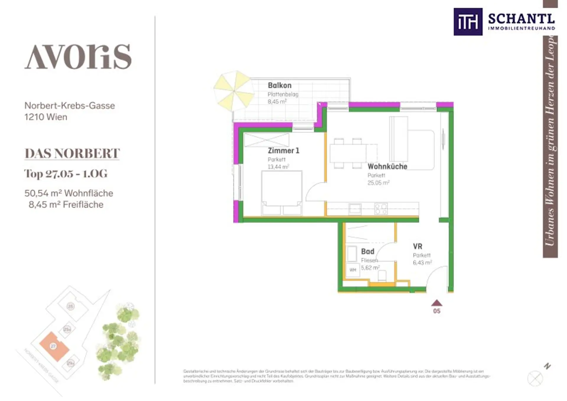 Wohnfläche: ca. 50,54m² + Balkon: ca. 8,45m² + Kellerabteil