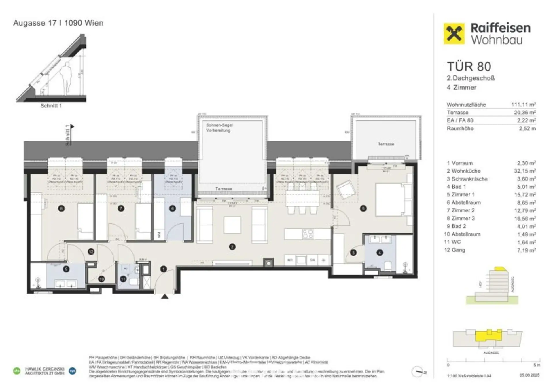 In einer wenig befahrenen Seitengasse entstehen nächst dem angekündigten „Campus Althangrund“ 81 attraktive 2-4 Zimmer Wohnungen zwischen ca. 39 und 163 m². Nahezu alle Wohneinheiten werden über gut nutzbare Freiflächen wie Balkone, Loggien, Terrassen oder Gärten verfügen. Die hauseigene Tiefgarage wird für 30 komfortable Einzelstellplätze Platz bieten. Auch an genügend Abstellplätze für Fahrräder und Lastenfahrräder wurde gedacht.