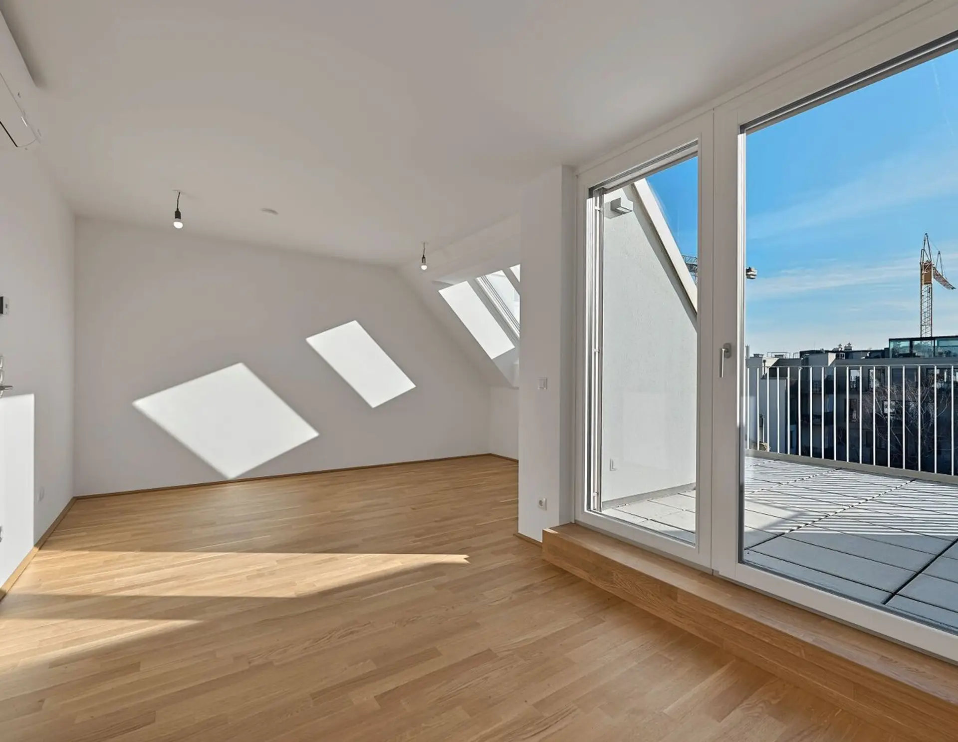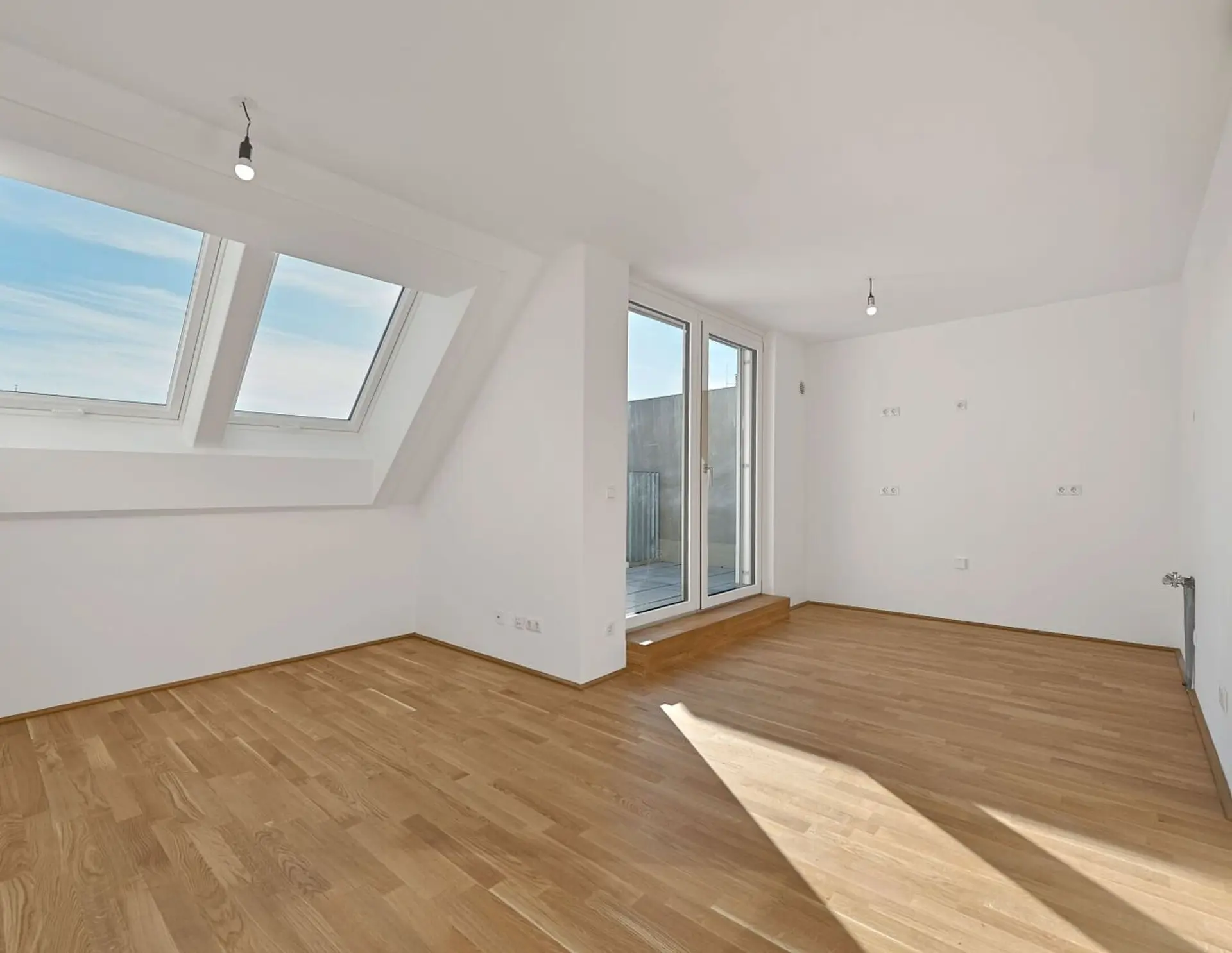 STIEGE 1 | TOP 36   Im 1. Dachgeschoss befindet sich die schöne und gut geschnittene 2-Zimmer -Wohnung mit ca. 50 m² Wohnnutzfläche sowie einem Balkon mit südöstlicher Ausrichtung. Dank dem modernen Grundris…