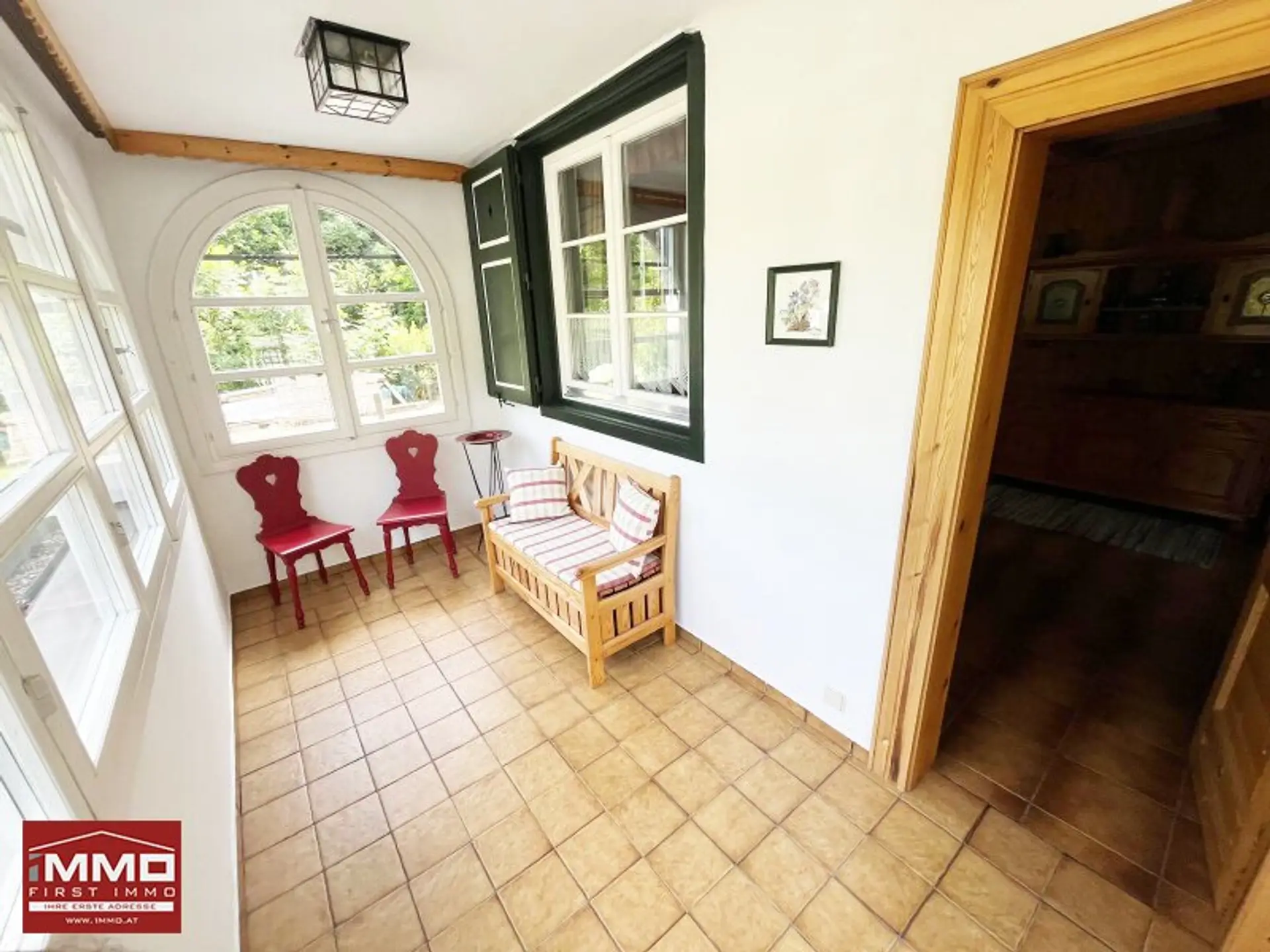 EG: Schlafzimmer (Gästezimmer), Badezimmer samt WC und WM-Anschluss, große wunderschöne Bauernstube mit Tischlermöbel samt Veranda, Vorraum und ein Abstellraum