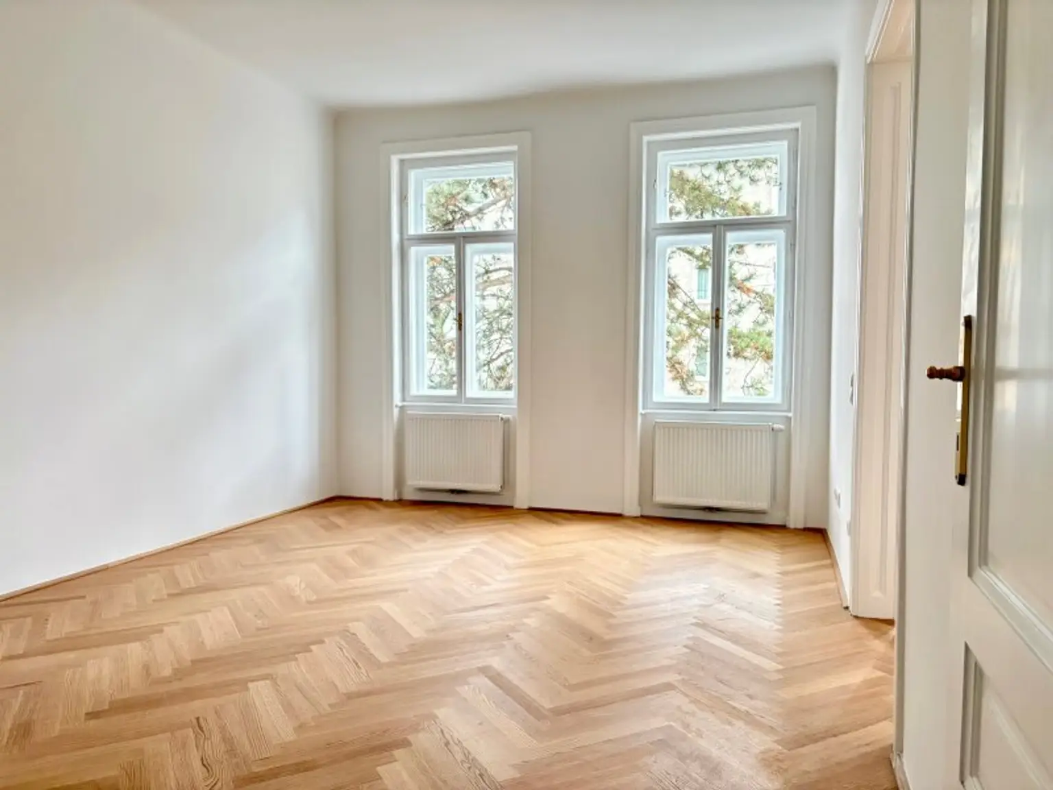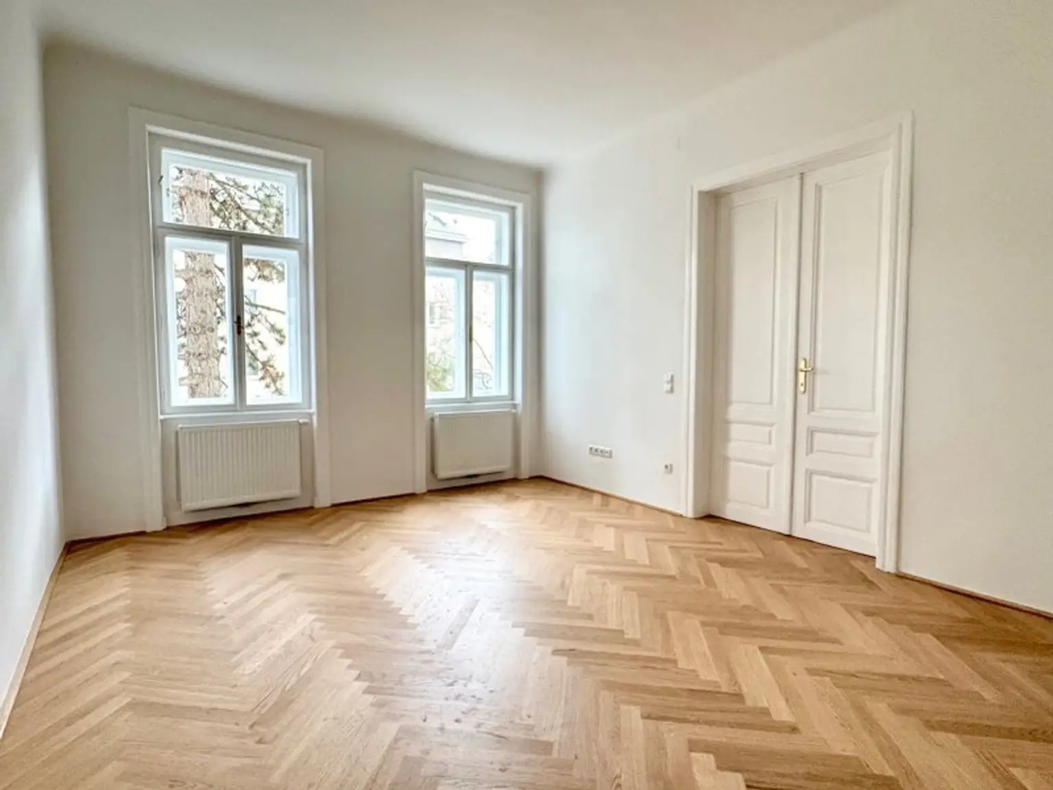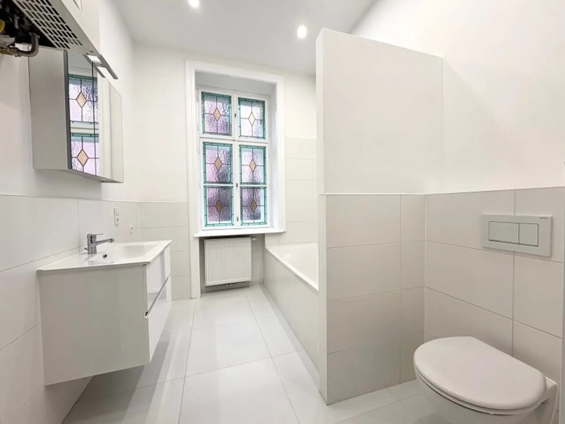 Die Wohnung im 1. Stock mit Lift verfügt über ca. 65m² Wohnfläche und zwei gut geschnittene Zimmer, die vielseitig nutzbar sind – ob als Wohn- und Schlafzimmer oder als Wohn- und Arbeitsbereich. Die separate Küche bietet ausreichend Platz zum Kochen und Genießen. Ein echtes Highlight ist das wunderschöne Badezimmer mit Badewanne, Waschmaschinenanschluss, WC und einem charmanten Buntglasfenster, das für besonderes Licht und eine ganz eigene Note sorgt. Ein geräumiges Vorzimmer rundet das stimmige Raumkonzept ab. Im Zuge der Sanierung wurde ein wunderschöner neuer Fischgrät-Parkettboden verlegt und die originalen Details, soweit möglich, erhalten. Elektrik und Heizung (Gas-Etagenheizung) wurden komplett erneuert. Das elegante Badezimmer verfügt über zeitlose, großformatige weiße Fliesen. In der Küche sind die Anschlüsse bereits vorbereitet. Ein Kellerabteil ist zugeordnet.
