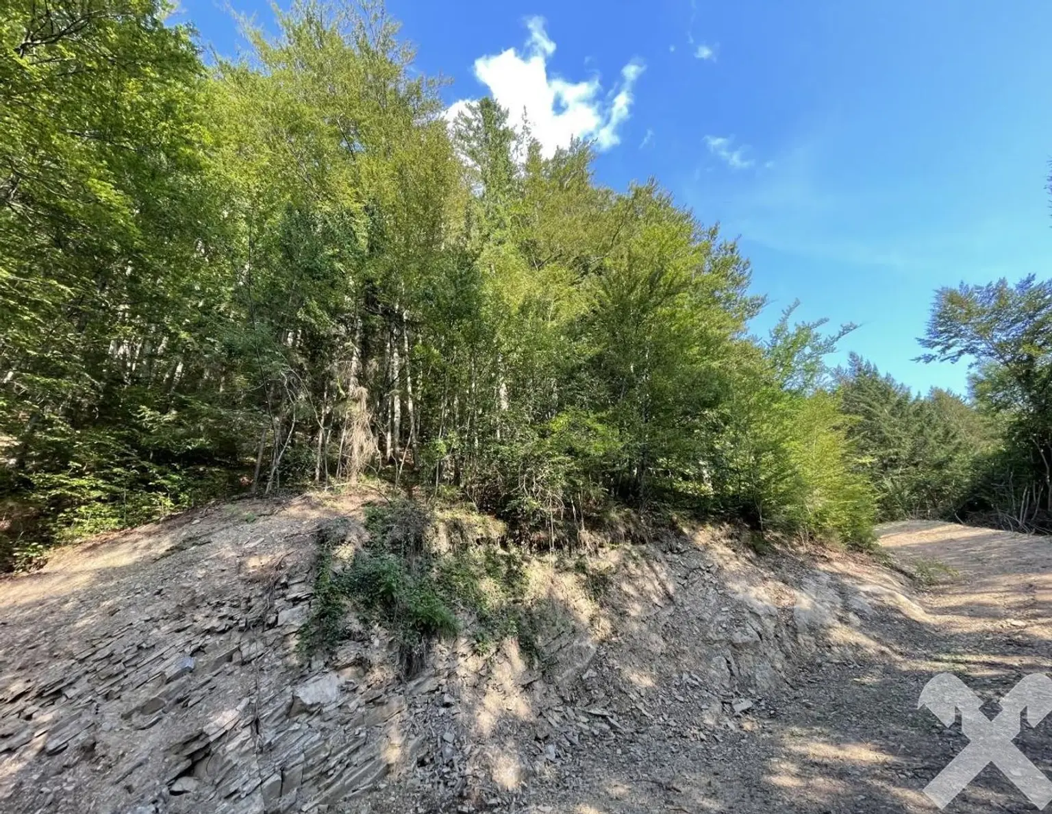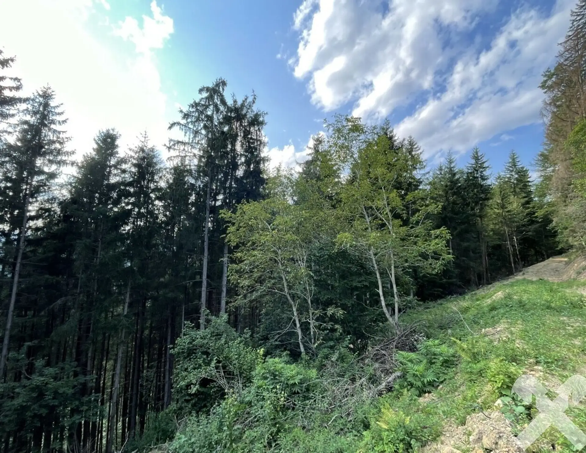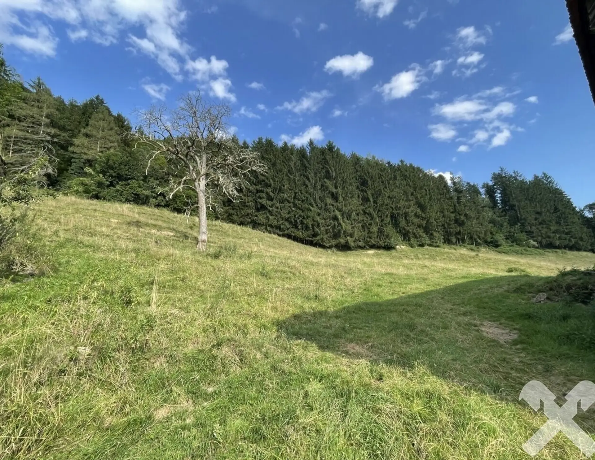 Angeboten wird ein rd. 10 ha großes, zusammenhängendes Waldstück in steiler Westhanglage. Der Baumbestand umfasst vorwiegend Laubgehölze unterschiedlicher Altersklassen sowie etwas untergeordnet auch Nadelgehölze. Dire…