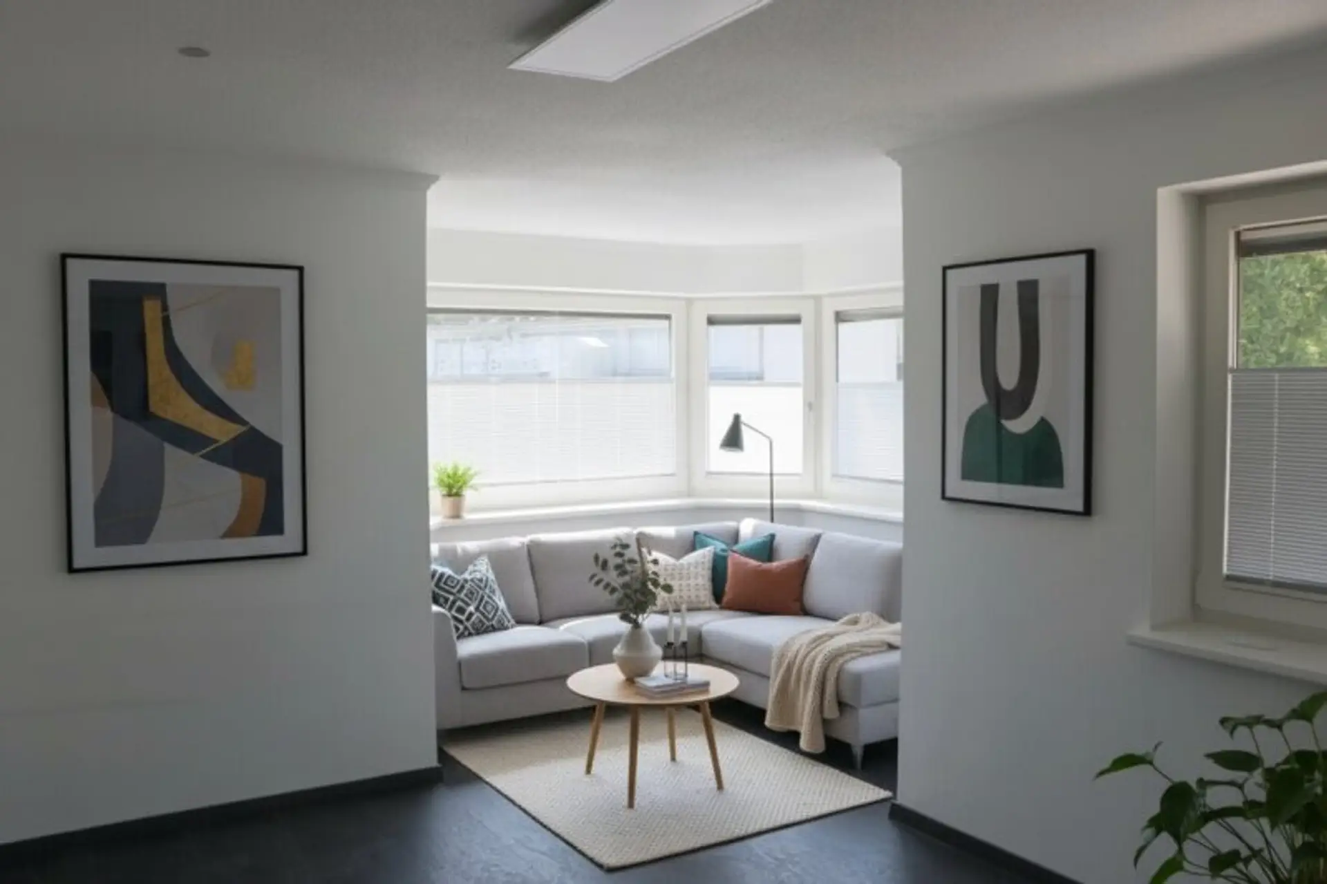 * Verdunkelung: Teilweise Außenjalousien bzw. Sonnen/Sichtschutz