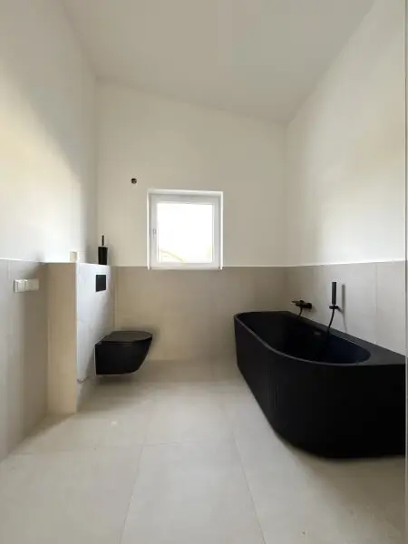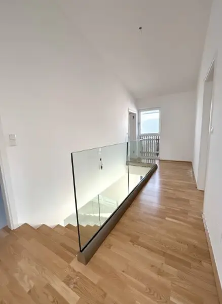 Die Häuser werden mit langlebigen Kunststoff-Alu-Fenstern und einer massiven Alu-Haustüre ausgestattet. Elektrische Rollläden helfen Ihnen nicht nur ungewünschten Lichteinfall zu verhindern, sondern auch dabei, das Raumklima an heißen Tagen oder kalten Nächten auf einem angenehmen Niveau zu halten. Eine moderne, effiziente Luftwärmepumpe sorgt dabei für wohlige Wärme.