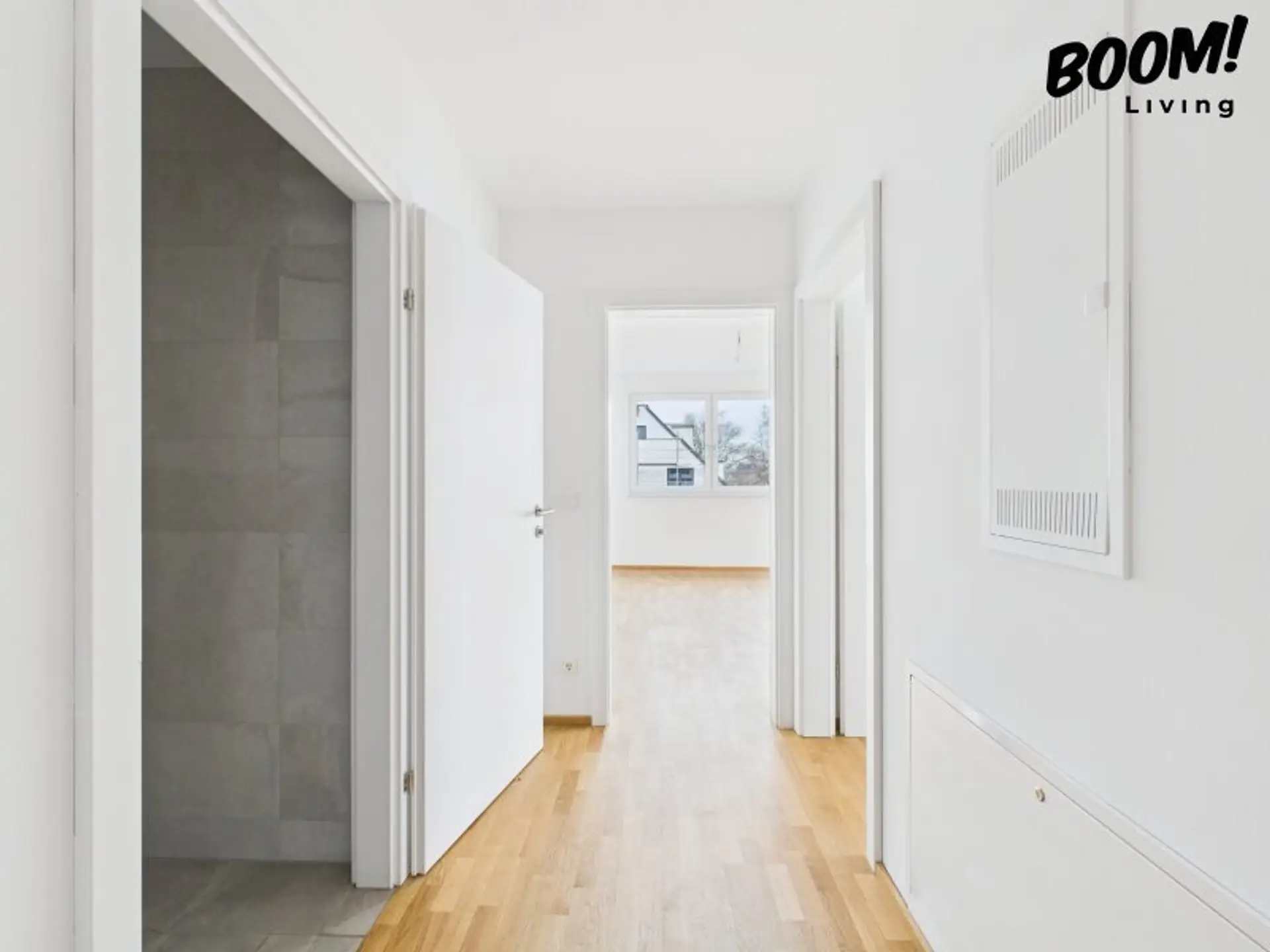 Die Ausstattung überzeugt mit Echtholzparkett, großformatigen Fliesen, einer Fußbodenheizung über Luft-Wärmepumpe, 3-fach-verglasten Fenstern und elektrischen Raffstores – energieeffizient, stilvoll und langlebig.