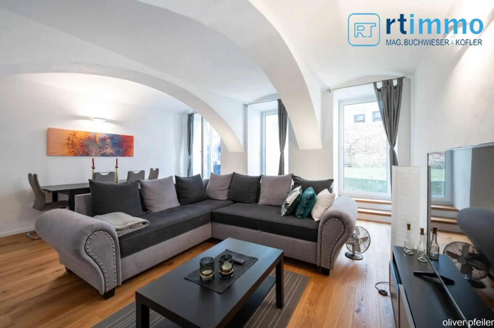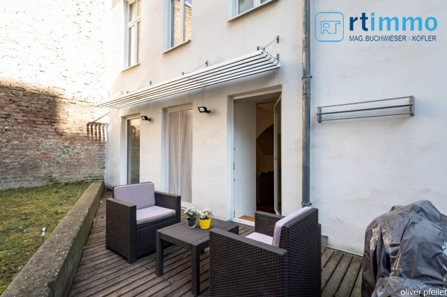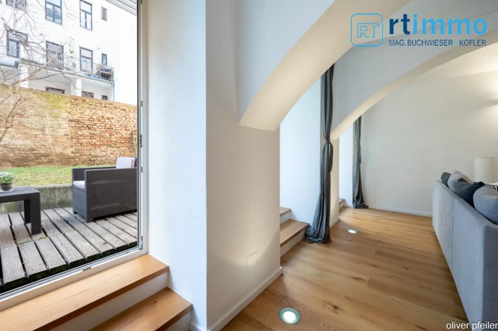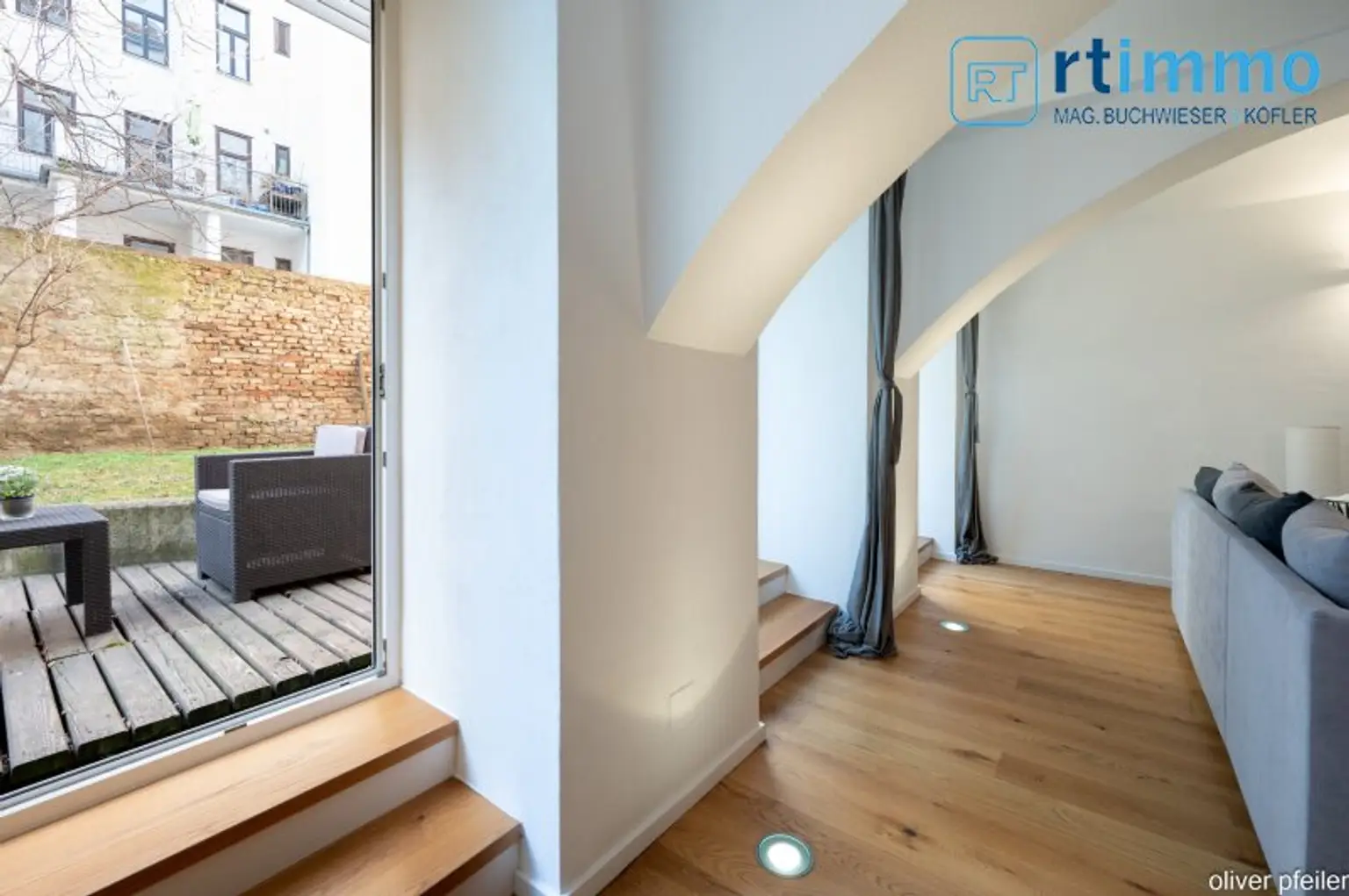 Diese beeindruckende Wohnung in Donaukanalnähe besticht durch eine sehr angenehme Atmosphäre auf Grund der sehr schönen Ausstattung, dem wunderschönen Gewölbe im Wohnzimmer und den Ausgang zur Terrasse und Garten.