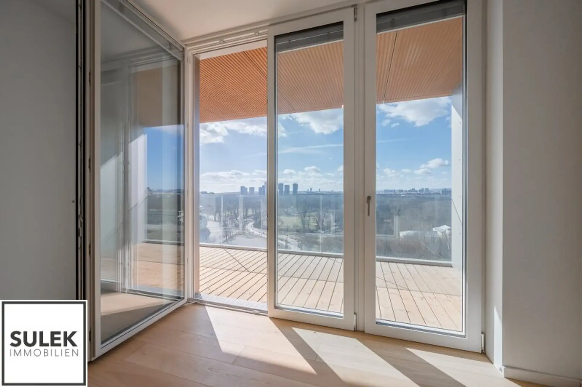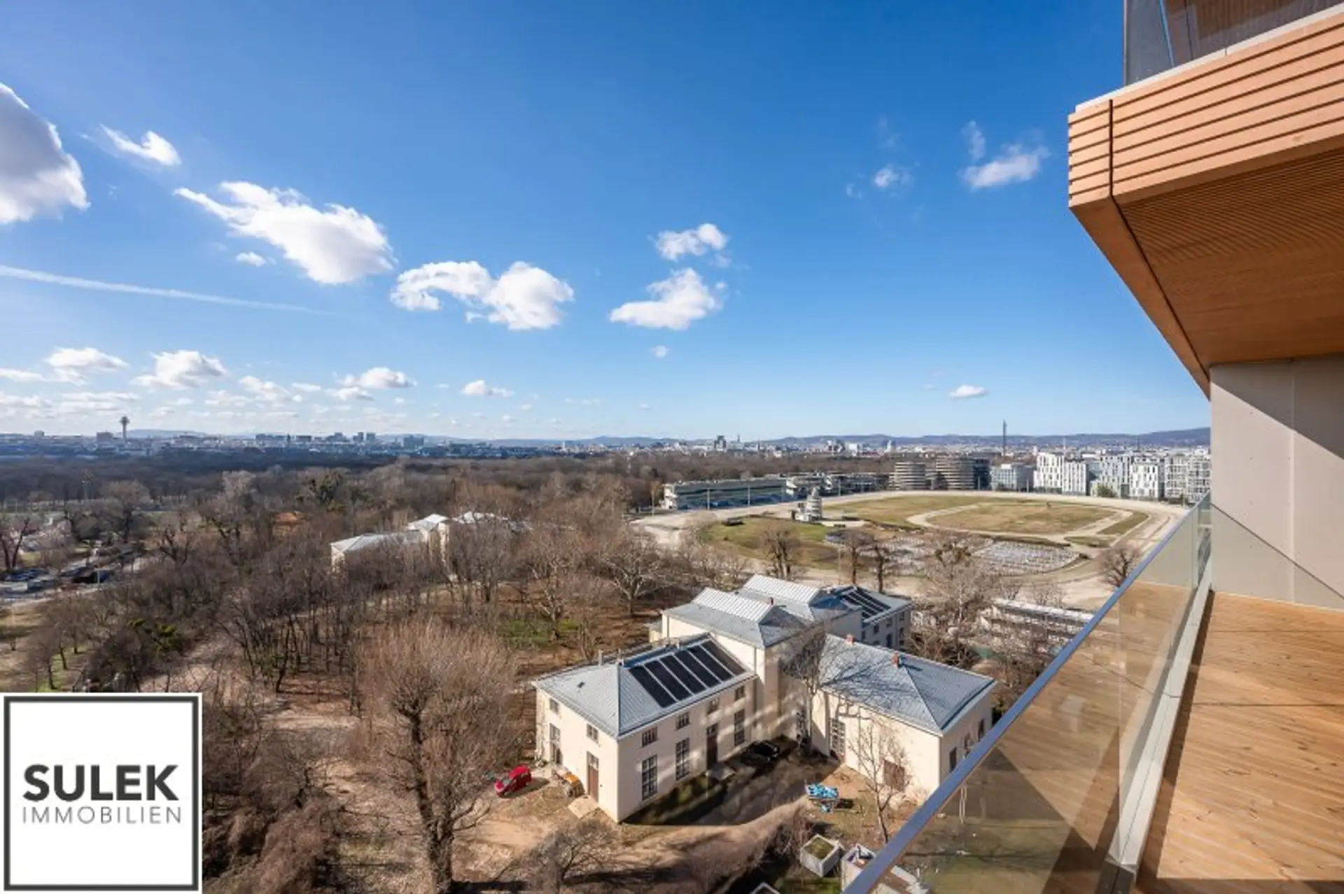 In der 12. Etage des renommierten Projekts Grünblick im Viertel Zwei, direkt am Grünen Prater und nur wenige Meter von der U2-Station "Stadion" entfernt, erwartet Sie ein hochwertiger 3-Zimmer-Erstbezug mit südwestseitigem Balkon und freiem Blick Richtung Trabrennbahn Krieau.