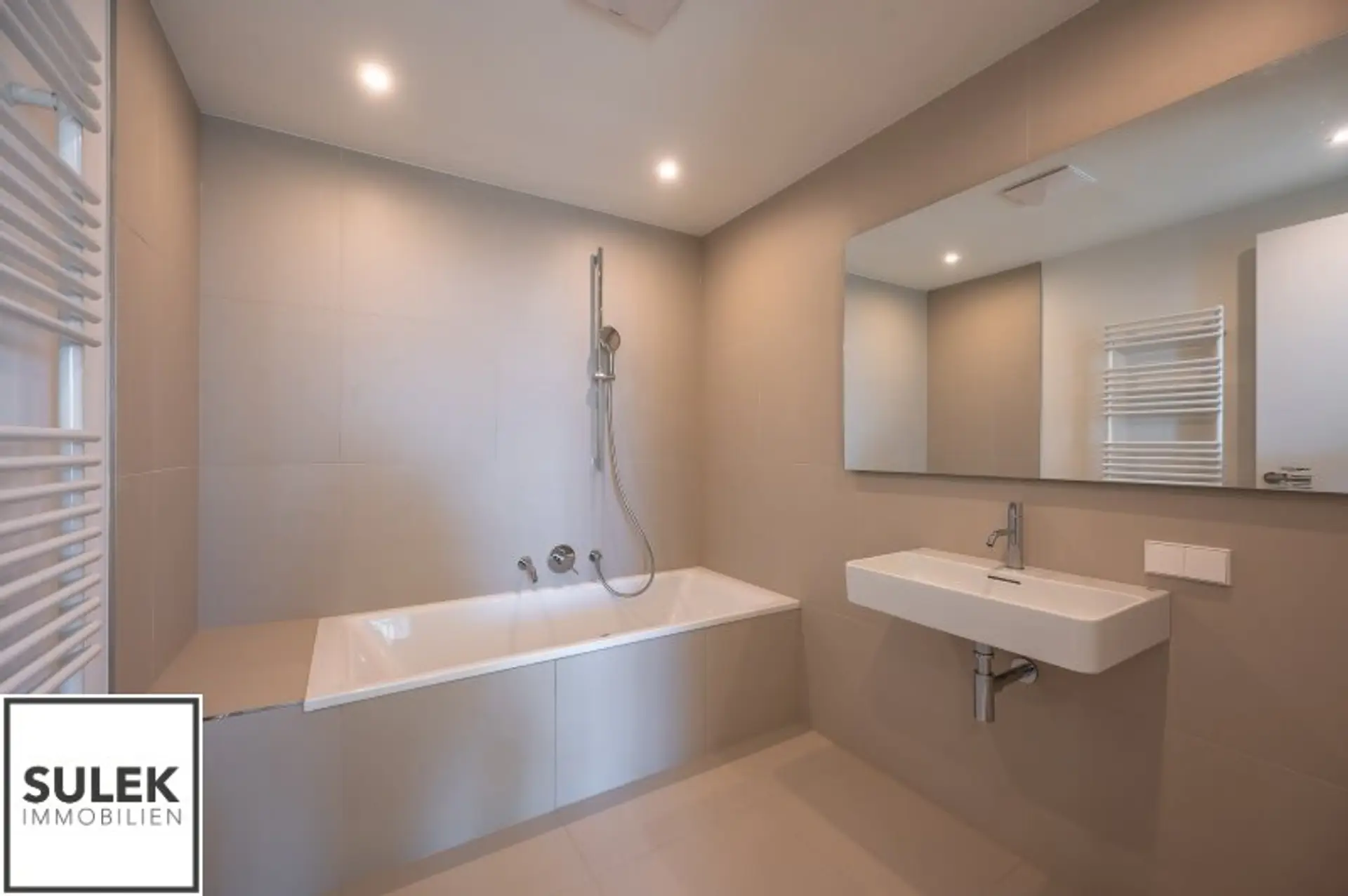 * Badezimmer mit Badewanne und Handtuchheizkörper