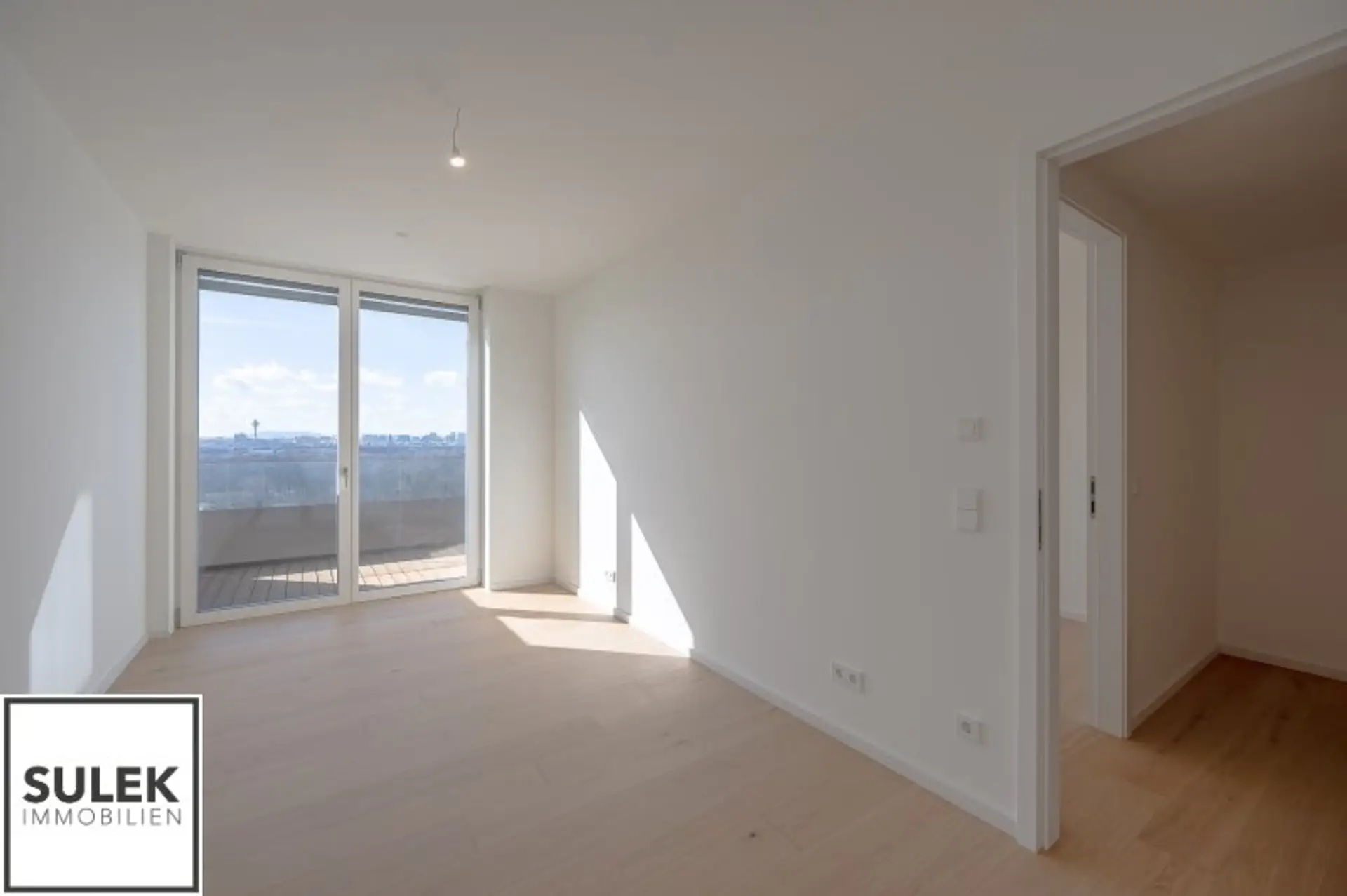 Großzügige Raumhöhen von 2,70 m, bodentiefe Fenster, Fußbodenheizung und Deckenkühlung schaffen ein helles, angenehmes Wohngefühl. Der sonnige Balkon erweitert den Wohnraum ins Freie und bietet ideale Bedingungen für entspannte Nachmittage mit Weitblick.