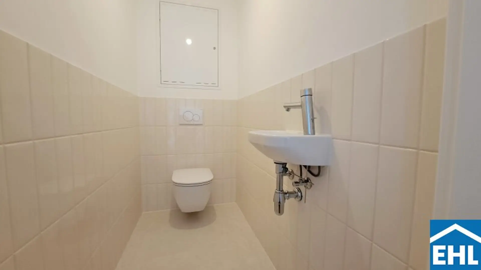 * Hochwertiges Feinsteinzeug in den Sanitärräumen