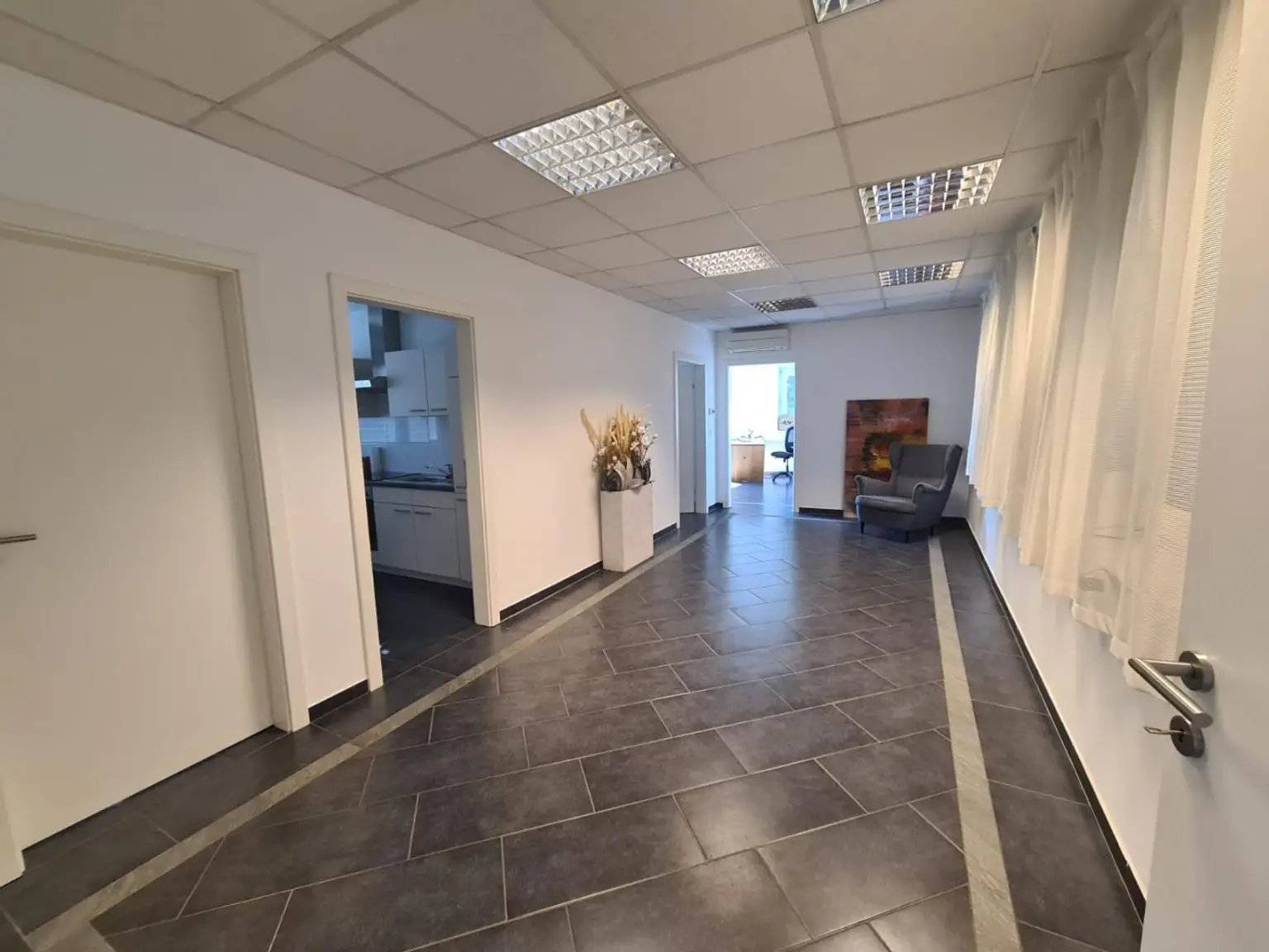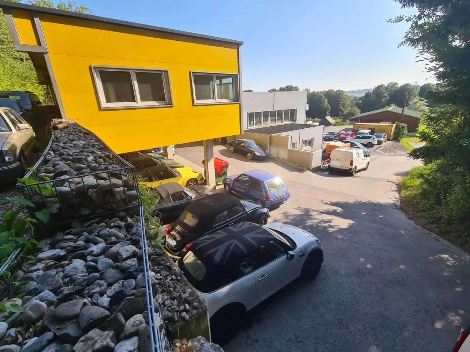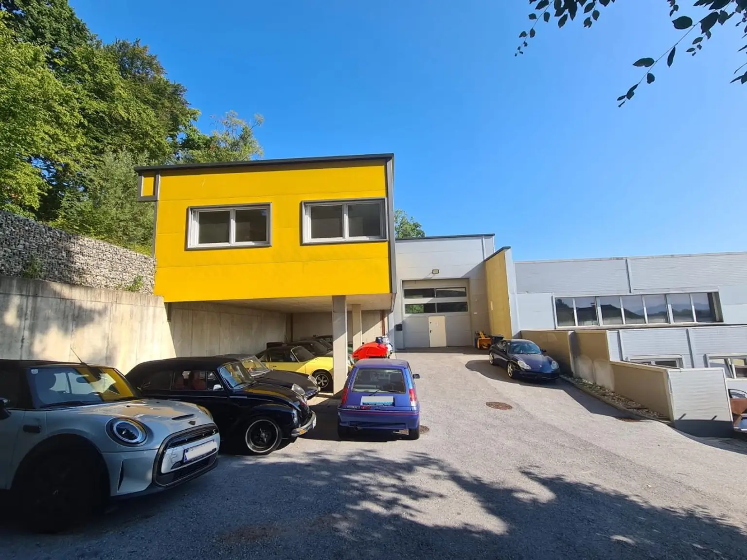 Die Halle umfasst ca. 270 m² und ist mit drei Hebebühnen ausgestattet. Ergänzt wird die Fläche durch ein großzügiges Büro mit ca. 65 m², Aufenthaltsräume, Sanitärbereiche sowie einen Kellerbereich für Lager oder Technik.