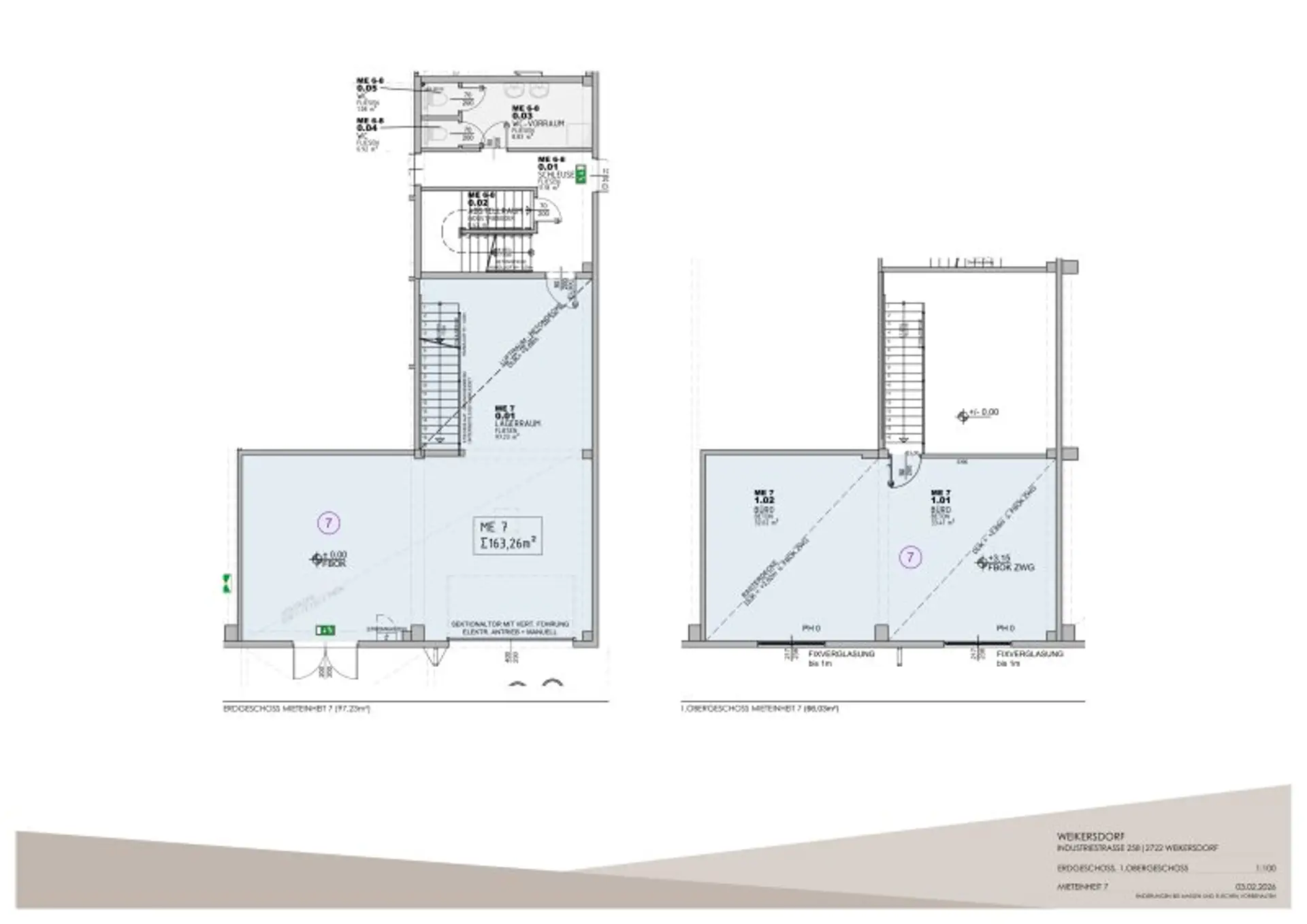 Das als Werkstatt/Lager/Büro nutzbare Objekt befindet sich im EG/OG und ist mit einer Tür und einer Garagentür versehen. Das Büro ist innen über Stufen erreichbar, WC ist im Stiegenhaus.