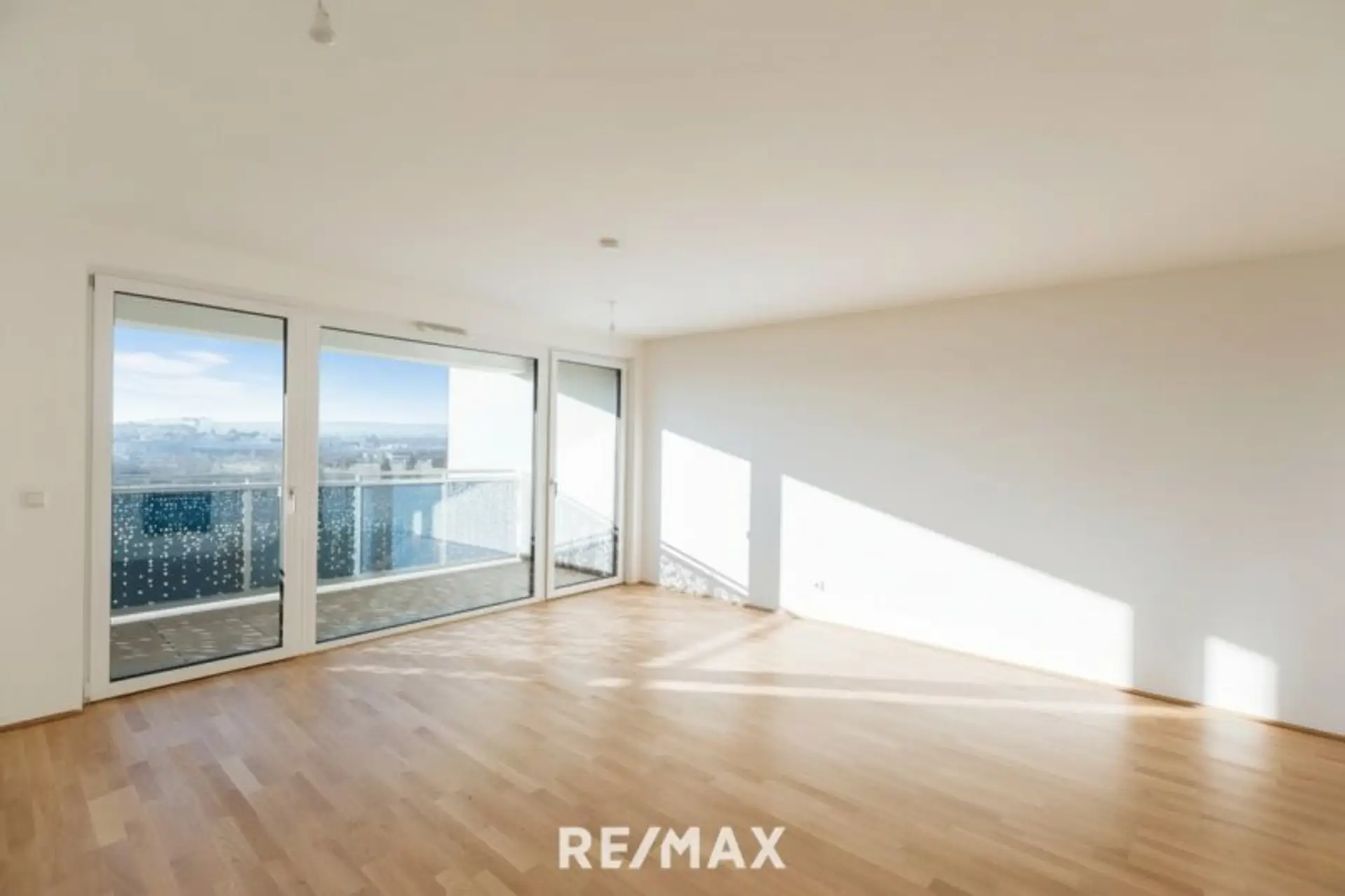 Großzügig, hell und offen – bodentiefe Fenster schaffen Weite und lassen den Raum mit der Loggia verschmelzen. Zeitgemäße Wohnkultur, die begeistert.