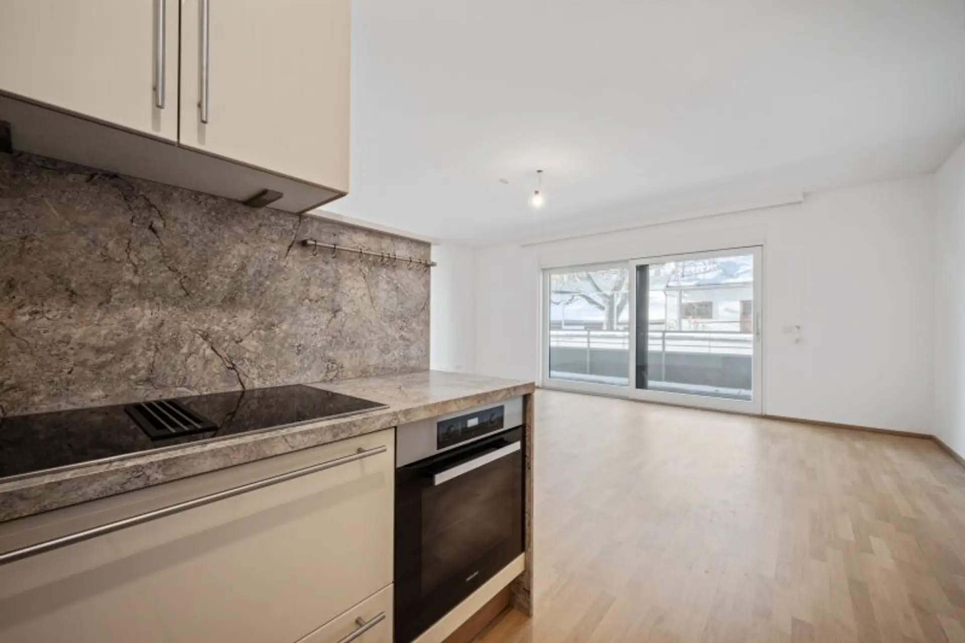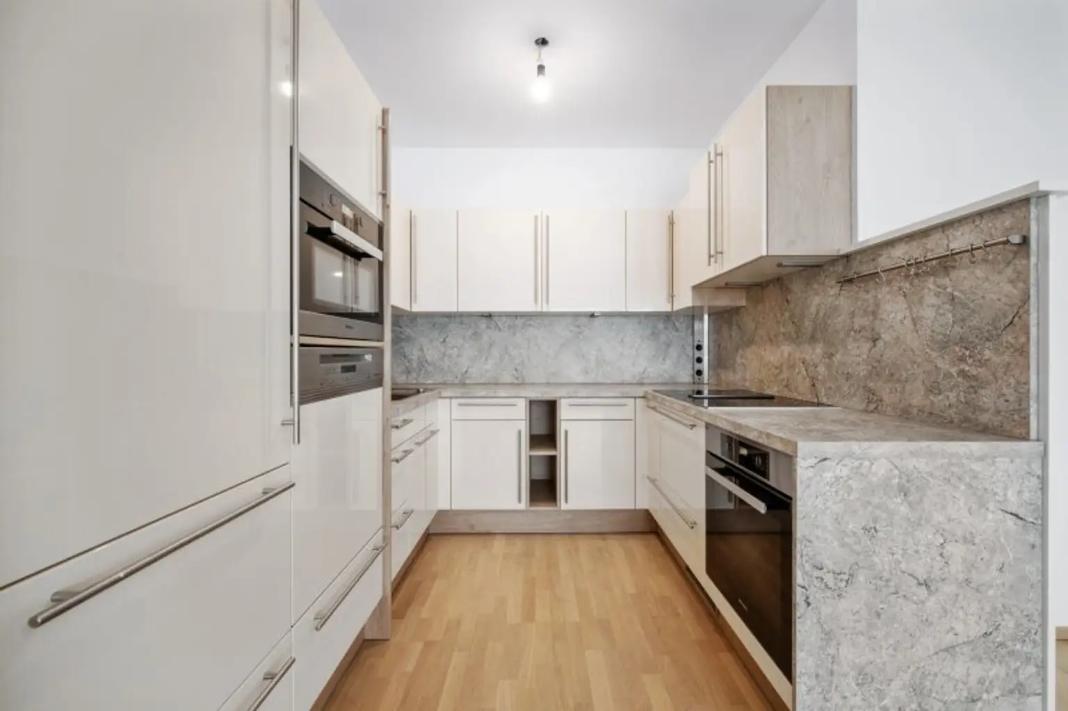* Der Wohn- Essbereich ist mit einer Küche mit hochwertigen Gärten von Miele und Bora ausgestattet (Induktionsherd, Backofen, Geschirrspüler); die Vormierter haben den freistehenden Kühlschrank wieder mitgenommen. Ein solcher muss daher seitens dem neuen Mieter wieder ergänzt werden.