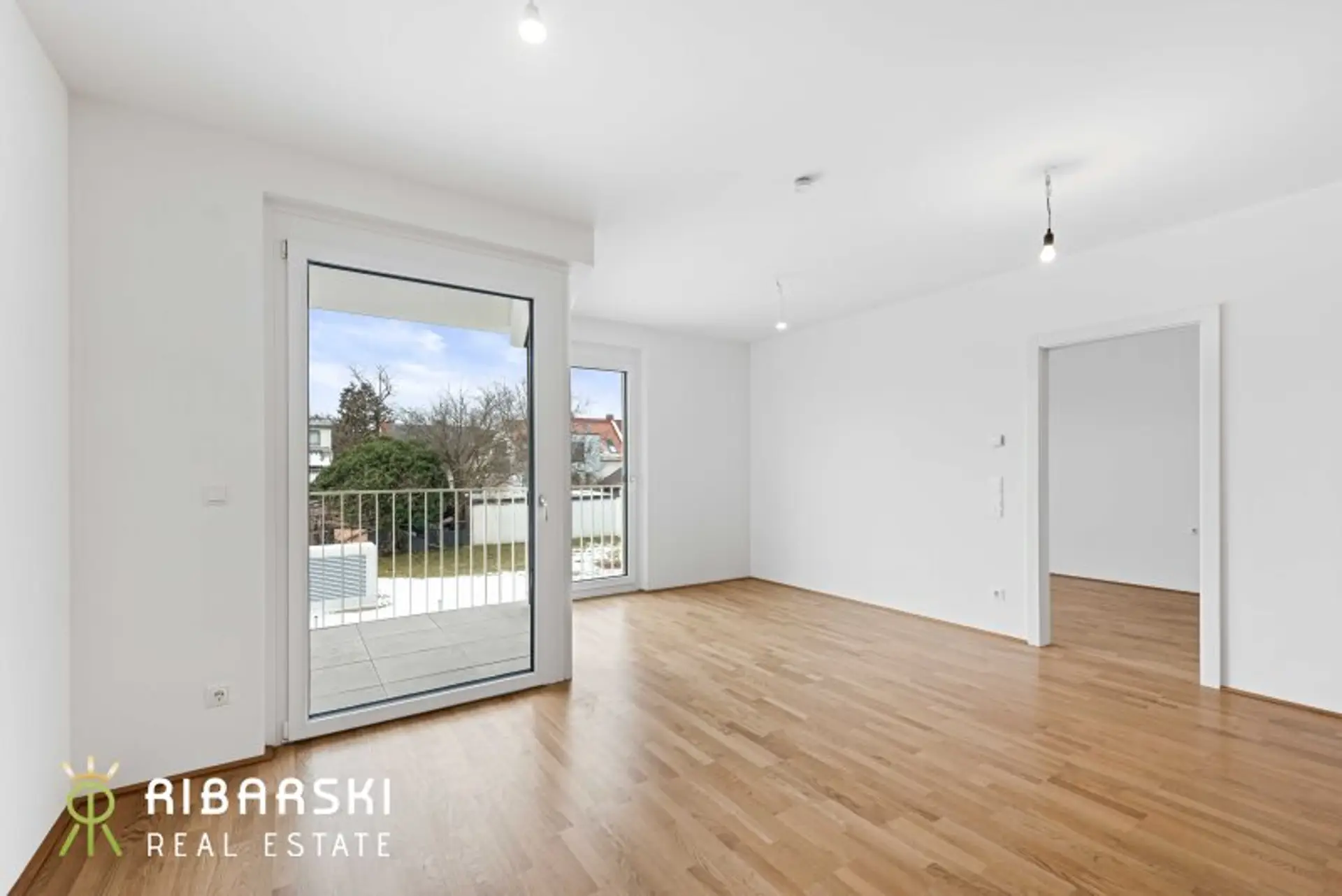 Die angebotene Wohnung bietet Ihnen zwei gut geschnittene, sehr helle Wohnräume, einen Abstellraum, ein Badezimmer mit Dusche und ein separates WC. Eine elegante Einbauküche ist bereits vor Ort. Das Highlight der Wohnung ist zweifelsohne die extravagante Glasfront gegen Westen ausgerichtet. Genießen Sie die Abendsonne auf Ihrer gemütlichen Loggia und den Freiblick Richtung Rax und Schneeberg in Ihrer top modernen Neubauwohnung. Haben Sie Gäste, Kinder oder möchten Sie einfach entspannen, eignet sich dazu der großzügig angelegte Gemeinschaftsgarten.