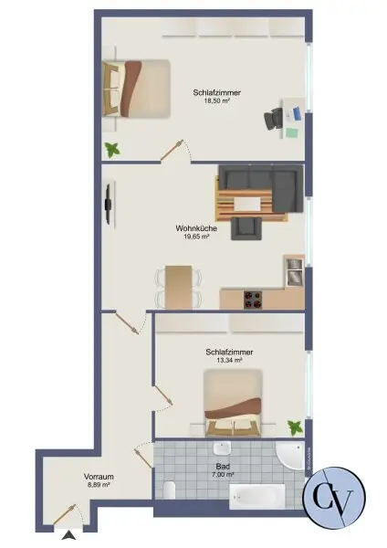 Zur Vermietung gelangt ein helles WG-Zimmer mit 18,50m² sowie 13,34m² (Mietpreis pro Zimmer). Zusätzlich steht noch eine helle Wohnküche für gemütliche Zusammenkünfte bereit.